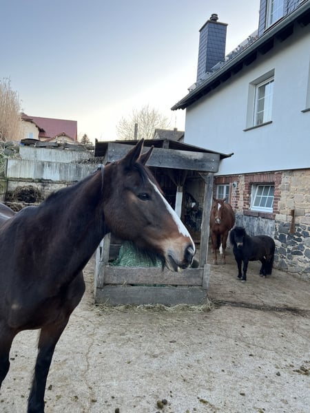 Si tratta di una cavalla irlandese di 11 anni, marrone, alta 160 cm e sana. È orientata alle persone e ama le coccole. Le piace lavorare a terra, è molto attenta e ha un'ottima andatura. La cavalla è molto ben educata, va bene su un rimorchio, la toelettatura, la sellatura, la passeggiata da sola, il maniscalco non è affatto un problema. All'affondo esegue tutte e tre le andature in modo impeccabile, è molto sensibile e ascolta bene la voce. Mostra ambizioni di salto, ama il lavoro a terra e la ginnastica e ha bisogno di ulteriori incoraggiamenti perché ha un grande potenziale e vuole piacere! Purtroppo, probabilmente ha avuto esperienze molto negative durante il rodaggio e può essere cavalcata solo da cavalieri esperti e sicuri. (Poi può essere cavalcata bene) Quando sale in sella, all'inizio è molto timida, a volte scappa e a volte si mette a correre. Purtroppo non ho abbastanza tempo per renderle giustizia nell'addestramento. Cerco quindi un cavaliere esperto che possa investire un po' di tempo nel suo addestramento. Ha già avuto un puledro, quindi è interessante anche come fattrice (carta bianca). Vorrei trovarle una casa dove possa essere ulteriormente sviluppata. Non sarà venduta come principiante o come nuova cavalla. Tutto il resto, foto, video ecc volentieri da PN o quando ci conosciamo. Posto prima del prezzo