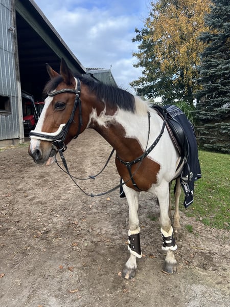 Miss Dakota, a 15-year-old mare, is a gentle, affectionate horse seeking a new, suitable home. She is very people-oriented and reliable in daily handling. In groundwork and lunging, she works attentively and with enthusiasm, always easy to handle. She is also a trustworthy partner in the field, riding calmly and well-behaved in a group setting. Under saddle, Miss Dakota requires a consistent, clear leadership. She is not suitable for children or beginners, as she needs a confident, experienced rider who can give her guidance. With the right person by her side, she can showcase her full potential and brings great joy to riding. She particularly thrives over fences, displaying enthusiasm and talent. Miss Dakota is a loyal, motivated mare with a big heart, looking for a partner who understands and nurtures her. Her saddle is currently being sold, so a trial ride without a saddle is only possible at the moment. She will be sold with various accessories. She is 15 years old and measures 1.57 meters at the withers. This is not a desperate sale; I am looking for a loving home where she will be appreciated and valued. If interested or if you have any questions, please feel free to contact me.