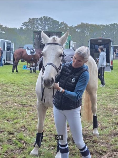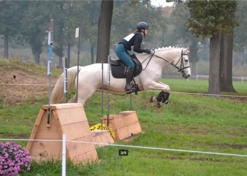 Talentierte, kühle 3-jährige Stute (2022) mit ISH- Stammbaum, vollständig RX-genehmigt ohne Bemerkungen. Wir haben sie seit Fohlenzeit und kennen somit ihre gesamte Geschichte. Dunguaire Lola wurde Anfang August eingeritten, hat ihre ersten Cross-Experience gesammelt und zeigt dafür großes Potenzial. Sie hat einen kraftvollen Sprung, bewegt sich schön und besitzt ein mutiges Wesen. 👌 Für den Vielseitigkeitssport! Sie hat bereits eine Springprüfung auf 70 und 80 cm absolviert und ist somit bestens vorbereitet, nach ihrer wohlverdienten Pause wieder ruhig ins Training einzusteigen. Sie ist beim Transport sehr entspannt. Lola ist ein äußerst liebes Pferd, ruhig im Umgang und sehr intelligent. Beim Einreiten hat sie keinen Schritt falsch gemacht, und auch bisher verarbeitet sie alle neuen Eindrücke hervorragend. Lola wurde auf eine ruhige Weise ausgebildet, ohne Peitsche oder Sporen, sodass sie die Arbeit auch einfach nur schön findet. Sie läuft auf eigenen Beinen und verfügt bereits über viel Balance, obwohl sie erst drei Jahre alt ist. Wenn du also auf der Suche nach deinem nächsten Vielseitigkeitstalent bist, in einem schönen Paket, kannst du sie gerne testen! Sie eignet sich auch gut für jemanden, der von Ponys kommt, weil sie so brav ist. Lola steht in Nederhasselt (Ninove) und kann nach Vereinbarung getestet werden. Wir wünschen Lola eine erfolgreiche Zukunft bei einem ambitionierten Reiter mit Herz und Pferdekenntnis. Nach ihrem dritten Vielseitigkeitseinsatz in Meldert am 02.11. steht Lola auf der Weide und wird nicht mehr gearbeitet. Wir finden, sie hat sich ihre Ruhe mehr als verdient. Lola ist derzeit 1,57 m groß, wird aber voraussichtlich auf 1,60 m heranwachsen, wenn sie ausgewachsen ist. Das Pferd auf dem Foto ist 1,71 m.