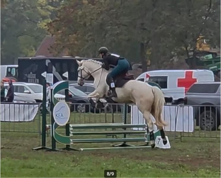 Talented, cool 3-year-old mare (2022) with ISH pedigree, fully RX approved without remarks. We have owned her since foal, so her entire history is known. Dunguaire Lola was backed at the beginning of August, has already gained her first cross-country experience, and shows great potential for this discipline. She has a powerful jump, moves beautifully, and has a brave character. 👌 Perfect for eventing! She has also already competed in one show jumping class at 70 and 80 cm! She is fully ready to return to work after a well-deserved break. She travels very calmly. Lola is a very sweet horse, calm in handling, and very sensible. She didn’t put a foot wrong during backing, and she continues to process all new impressions exceptionally well. Lola has been trained in a gentle manner, with no whip or spurs, so she genuinely enjoys her work. She moves on her own legs and already has good balance for being only three years old. If you’re looking for your next eventing talent in a lovely package, feel free to come and test her! She can also easily serve someone coming from ponies because she is so well-behaved. Lola is located in Nederhasselt (Ninove) and can be tested by appointment. We would love to see Lola go to an ambitious person with a heart for and knowledge of horses. After her third eventing competition in Meldert on 02/11, Lola is now turned out in a pasture and will no longer be worked. We believe she has earned her rest more than enough. Lola is currently 1.57 m (16.1 hh), but is expected to reach 1.60 m (15.3 hh) when fully grown. The mare in the photo is 1.71 m (16.3 hh).