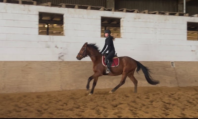 Keira jest bardzo miła, delikatna klacz, która u nas znajduje się na szkoleniu do sprzedaży. Jest koniem przyjaznym dla jednej właścicielki, lubi dzieci i jest łatwa w obsłudze w mieszanej stadzie. Została spokojnie i stopniowo przyzwyczajona do jazdy, obecnie jeździmy ją we wszystkich trzech podstawowych chodach. Ze względu na warunki pogodowe dotychczas tylko w hali. Keira NIE jest koniem dla początkujących i nie nadaje się dla niepewnych jeźdźców. Nie przepada za błędami jeźdźca. Potrzebuje spokojnego, delikatnego i pewnego w prowadzeniu jeźdźca. Chętnych do poznania jej prosimy o kontakt przez WhatsApp lub telefonicznie pod numerem 01639129382.