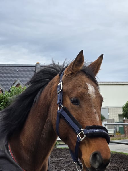 Keira is a very gentle, refined mare that is currently with us for training and will be available for sale. She is a one-person horse, enjoys the company of children, and gets along well in a mixed herd. We have introduced her calmly and gradually to saddle training, and she now rides in all three basic gaits. Due to weather conditions, she has so far only been ridden indoors. Keira is NOT suitable for beginners and is not recommended for nervous riders. She does not tolerate rider errors well. She requires a calm, sensitive, and confident rider. If you would like to get to know her, please contact us via WhatsApp or call us at 01639129382.