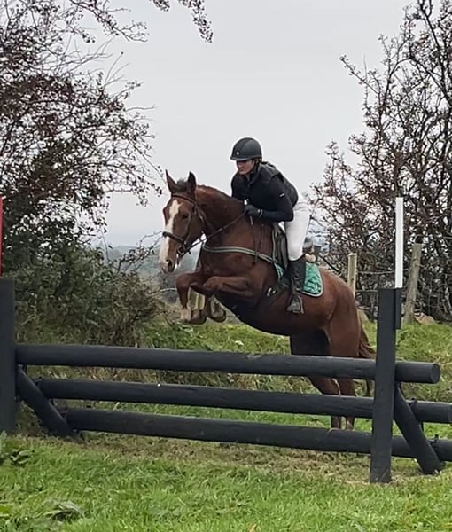 For sale is an exceptionally beautiful and talented Irish sport horse mare (born in 2021), impressing both with her striking appearance and her consistently pleasant temperament. She is large-framed, correctly built, and currently measures 17.5 hh, presenting a modern, athletic conformation. 🐴 Appearance: - Stunning dark chestnut - Attractive blaze - Four white socks - Very harmonious and elegant overall impression ✨ Character & Handling: This mare captivates with an extremely calm, friendly, and people-oriented nature. She is utterly lovable, shows no bad habits, and is absolutely straightforward in daily handling. - Well-behaved under saddle - Nerve-proof and clear-minded - Easy to handle, suitable even for less experienced riders - Quiet at the blacksmith - Loadable without issues 🏇 Training & Potential: The mare has been gently and age-appropriately trained and consistently demonstrates motivation and ease of riding under saddle. Dressage: Level A, smooth, supple gaits, very comfortable to sit Show jumping: Has jumped up to 1.00 m, always forward, not spooky, reliable to get to the other side Cross-country: Familiar with obstacles and hunting fences, a dependable partner in the field She possesses talent and aptitude for all equestrian disciplines and, with further training, is sure to develop into a top sport partner. Due to her wonderful character, she is also ideal for ambitious leisure riders who enjoy a particularly pleasant horse. 💉 Health: - Healthy, no vices - Shod on all four feet - Regularly vaccinated and dewormed 📦 Accessories & Service: - Suitable tack can be purchased at an additional cost - Transport can be arranged if needed 📍 Viewing & Contact: A viewing appointment can be arranged at any time by prior arrangement. For further information, pictures, or videos, please feel free to contact us at any time.