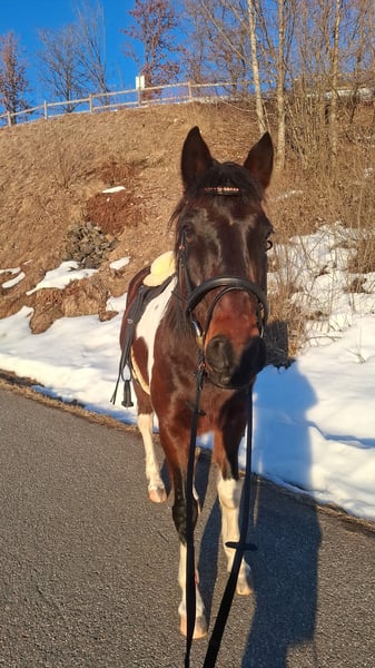Pleasure Riding Gelding "Bino" Seeks Calm, Experienced Home Bino, a gelding, approximately 15.5 hh, sensitive and friendly. Our Bino is a true family horse and more than just a kind soul. He is looking for a calm, confident handler without performance ambitions. Not suitable for beginners, but very good with children. He is familiar with groundwork, walks, and long rides. He was a distance horse for many years and is ridden both Western and English. He has a short back, similar to a trotter. He is very sensitive, attentive, and tests boundaries. No spook, no panic, ranks high in a mixed herd but is not a leader. Very social and playful. In good health, with physiotherapy support. His teeth and hooves have recently been attended to. Ideal for patient owners with a gentle hand and an interest in groundwork and a relaxed leisure riding routine. He is kept in a paddock system and will only be placed in such an environment. Priority goes to suitability, not price. Multiple visits preferred. No dealers or competitive riders, please.