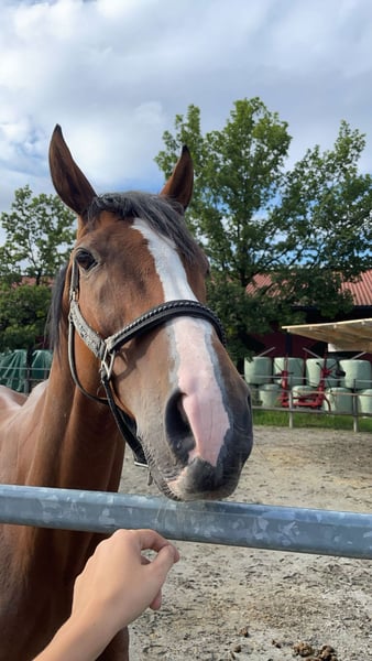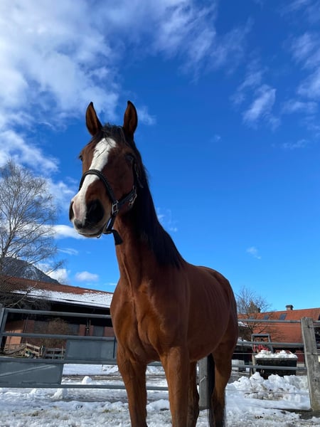 The beautiful 10-year-old gelding (Irish Sport Horse, 168 cm tall) found his way to us in the Tyrolean mountains in July 2024. Due to personal circumstances, his previous owners could no longer care for him. Now Buddy is eagerly waiting at the horse shelter to find his very own special person. Buddy is a soul of a horse! – Extremely people-oriented and very well-mannered in handling. With his curious and eager-to-learn nature, he loves to discover new things and likes to show off his clever little head. However, Buddy is not a beginner's horse and definitely wishes for a sensitive and experienced horse person by his side, someone who will explore the world with him and continue to support and challenge him. About three years ago, he was diagnosed with a suspensory ligament injury. Occasionally, a slight residual lameness is still noticeable, but otherwise, he enjoys excellent health. Buddy is also very uncomplicated and sociable with other horses and wishes for a herd with many friends in his new home, with whom he can play and romp around freely. Buddy is fully vaccinated and microchipped. He wishes for an open stable or a night box with daily turnout in his new home.