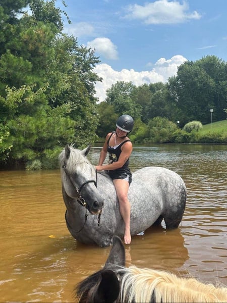 ♦️ 𝐭𝐡𝐞 𝐀𝐌𝐄𝐑𝐈𝐂𝐀𝐍 𝓕𝓪𝓵𝓵 𝓒𝓵𝓪𝓼𝓼𝓲𝓬 ♦️ Happening now thru MONDAY | OCTOBER 20th - Available EXCLUSIVELY on HorseBid's website! For more details and to register visit: www.Horsebid.com CONSIGNOR CONTACT: Soft Spur Ranch 757-284-1481 LOCATION: Edenton, NC BREED: Irish Sporthorse REGISTERED: No COLOR: Grey HEIGHT: 16.2 AGE: 11 GENDER: Gelding Finn is an 11 year old 16.2hh ISH gelding. No papers in hand, but he was imported from Ireland at a young age and has proven himself out fox hunting and eventing. He has happily fox hunted all three flights, but is a true athlete in first and second flight. He has shown novice level eventing at local events and has easily schooled training level. He has even participated in ISH classes with junior riders where he placed very well within his breed. Finn is perfect out trail riding alone or in groups. I believe he identifies as part fish with how much he enjoys to go out for a swim. This guy is unflappable and is suitable for any level of rider. He loads, ties, and clips. He has great ground manners and no quirks or vices. No maintenance required and is sound with no past injuries or medical issues. Finn is the horse you can put the whole family on. He will jump anything you point him at without blinking. He is a once in a lifetime horse.