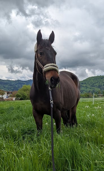 Traum-Charakter sucht Endplatz - möglichst Zeitnah Wegen Aufgabe des Reitsports sucht Diamond ein neues Zuhause. Er ist ein super toller Freizeitpartner! Sensibel, freundlich, motiviert bei der gemeinsamen Arbeit. Er liebt die Haltung in der Herde und so viel Auslauf wie nur möglich. Aktuell lebt er in einem Offenstall in einer Wallachgruppe. Zeigt sich hier verspielt, sehr sozial und nett (rang mittig). Er freut sich, wenn er eine feste Bezugsperson hat. Ich wünsche mir für ihn wirklich SEINEN Menschen zu finden. Sein Reiter sollte fein und einfühlsam sein. In der Bodenarbeit macht er super mit. Durch seine sensible Art wahnsinnig fein über Körpersprache und Energie zu lenken. Er liebt Spaziergänge und Geländeritte und ist bei jedem Abenteuer durch die Natur dabei. Momentan 4 Fach beschlagen. Regelmäßig Tetanus geimpft, Zähne zuletzt Ende Mai 2025 gemacht. Im letzten Jahr hat er Equines Asthma entwickelt. Mit bedampftem/gewaschenem Heu und angepasstem Stallklima sollte das keine Symptome mehr verursachen. Im September hatte er vorne links eine Hufgelenksentzündung, diese wurde erfolgreich austherapiert. Im November hatte er in drei Facettengelenke der Halswirbelsäule kleine Entzündungen. Diese wurden ebenfalls therapiert und sind ausgeklungen. Bei der Diagnostik wurde minimal beginnende Arthrose an diesen Facettengelenken festgestellt. Diese beeinträchtigt ihn nicht, wenn auf gesund ausgebildete Muskulatur geachtet wird. Ich wünsche mir für ihn einen Endplatz, wo genug Zeit vorhanden ist, um ihm die Aufmerksamkeit zu schenken, die er verdient hat und ein festes Familienmitglied sein darf. Weiteres gerne in einem Telefonat und persönlichem Kennenlernen. Gesamtes Zubehör kann gerne mit erworben werden. (Inhalator, Regen-, Fliegen-, und Abschwitzdecken, Halfter, Trense, Kappzaum, Reitpad, Schabracken, etc.) Keine Händler oder Reitschulen.