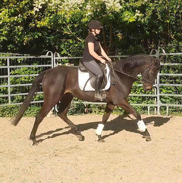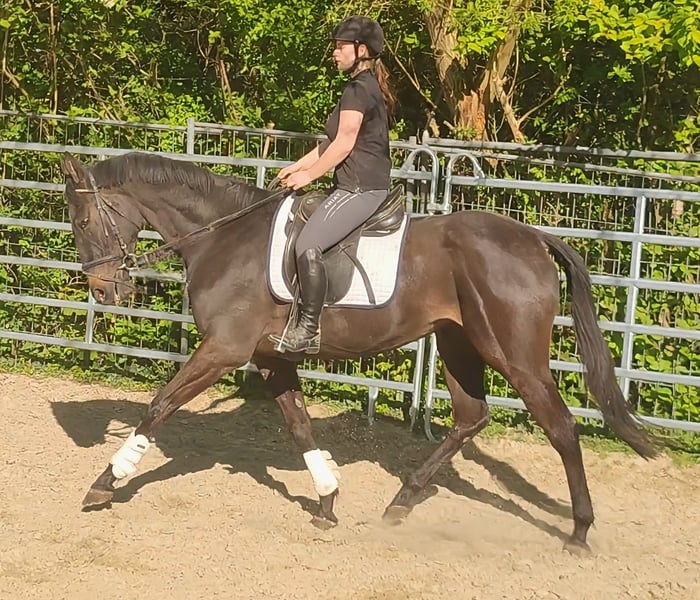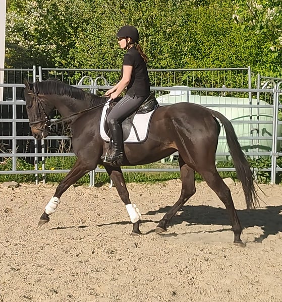 Obelix est un magnifique hongre noir-brun d'environ 4 ans et mesurant 1,68 m, qui se montre très à l'aise à cheval. Facile à mettre en selle et très agréable à monter, il se révèle être un compagnon très prometteur malgré son jeune âge. Il a été monté sans problème par des jeunes filles. Amical avec ses congénères et s’intègre rapidement dans une nouvelle troupe. Son caractère ouvert et joueur rend Obelix tout simplement attachant. Possibilité de reprise et de transport. Sur demande, il peut être vendu avec un équipement complet neuf, moyennant un léger supplément. Une inspection vétérinaire d’achat peut également être réalisée par votre propre vétérinaire, incluant radiographies et analyses de sang. Pour toute demande, merci de contacter uniquement par téléphone au 015172059610. Les demandes écrites ne seront pas répondues.