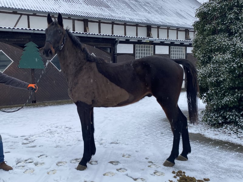 Interesting horse with three good basic gaits and promising free jumping ability. His pedigree is very promising: Tyson / Numero Uno x Douglas / Darco. The gelding has been allowed to grow up outdoors and is now being lunged and soon saddle-trained. He is very people-oriented and not fearful. The gelding has a solid foundation.