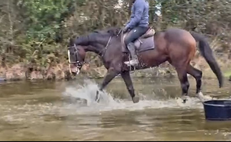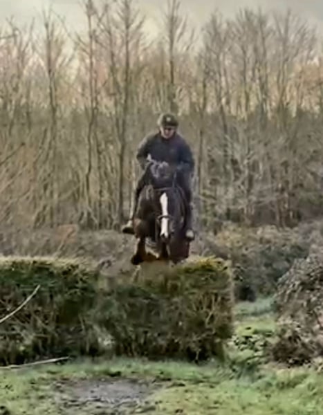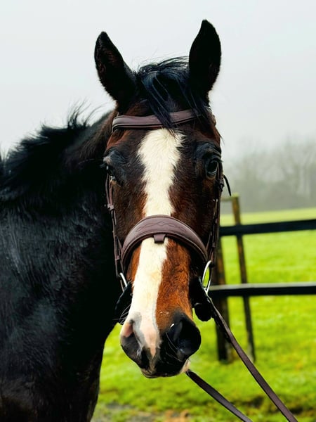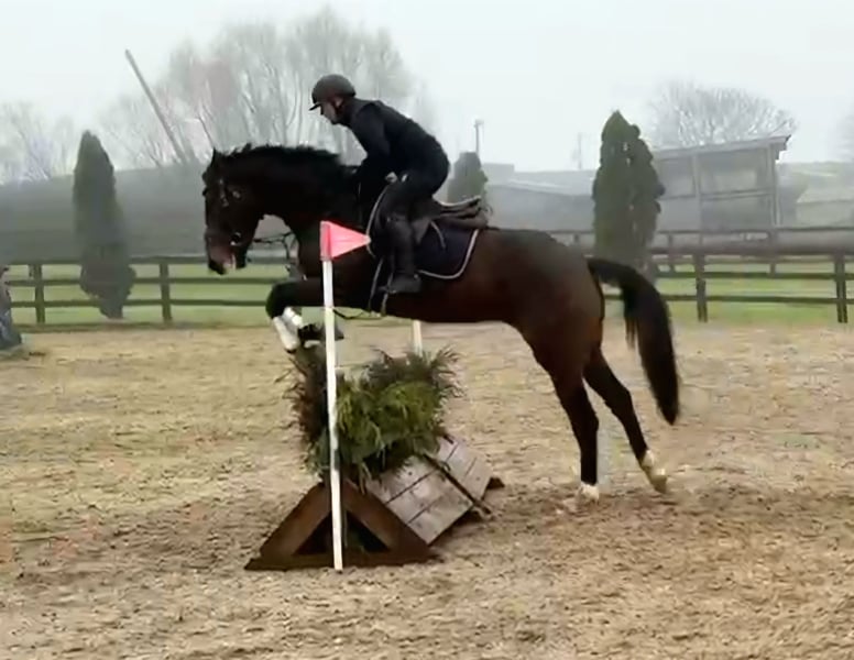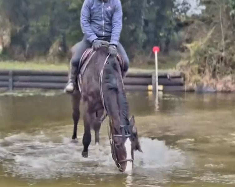4 year old blood marked gelding who is still in full development. He is approx. 8 weeks under saddle and already knows small cross-country jumps. A great young horse to train yourself. Only for sale to experienced riders due to his age.