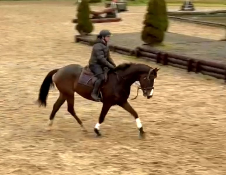 Castrone di 4 anni con marchio di sangue che è ancora in pieno sviluppo. Ha circa 8 settimane di vita sotto la sella e conosce già piccoli salti di fondo. È stato nel prato per 3 settimane perché sa tutto quello che deve sapere per la sua età e sarà venduto direttamente dal prato. Un grande cavallo giovane da addestrare da soli. A causa della sua età, può essere venduto solo a cavalieri esperti.