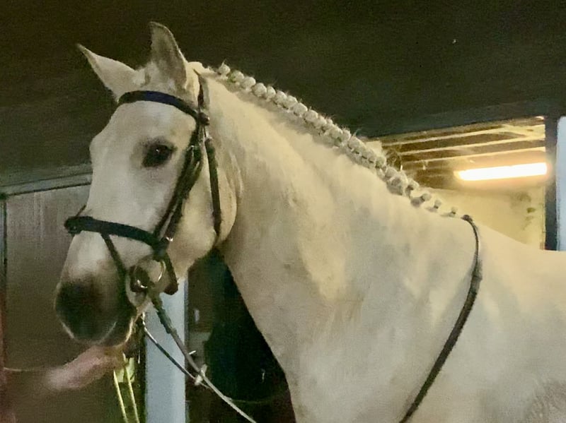 2020 Palomino Wallach, 165cm stockmass Es gibt Pferde, die man trifft – und es gibt Pferde wie Ken, die einem vom ersten Moment a das Herz stehlen. Mit seinem goldschimmernden Palomino-Fell, das in der Sonne glänzt, und seinem sanften, klugen Blick ist Ken das, was man einen echten „Barbie-Traumpferd“ nennt – wunderschön, freundlich und durch und durch ehrlich. Ken ist nicht einfach nur ein Pferd, er ist ein wahrer Freund. Er ist immer der Erste, der dich auf der Weide begrüßt, mit gespitzten Ohren und weichem Blick, immer bereit für eine Umarmung oder ein paar Streicheleinheiten. Er liebt Aufmerksamkeit, ist unglaublich menschenbezogen und hat ein liebevolles, loyales Wesen. Egal, wie dein Tag war – Ken empfängt dich mit Freude und macht alles besser. Unterm Sattel ist Ken so unkompliziert und verlässlich, wie man es sich nur wünschen kann. Ruhig, brav und unerschrocken – er bleibt immer derselbe, ob zu Hause oder in neuer Umgebung. Er geht allein oder in Gesellschaft ins Gelände, ist absolut verkehrssicher und nimmt alles gelassen hin. Sein ausgeglichenes Wesen macht ihn zum idealen Partner für Reiter aller Erfahrungsstufen, und sein ehrlicher, gutmütiger Charakter schenkt jederzeit Vertrauen. Doch Ken ist nicht nur ein Schatz im Umgang, sondern auch ein talentiertes, sportliches Nachwuchspferd mit viel Potenzial. Er bewegt sich elegant und ausbalanciert, mit drei schwungvollen Grundgangarten und einer weichen, feinen Anlehnung. Er ist über Spring- und Geländehindernisse gearbeitet, springt zuverlässig ins Wasser und über Gräben, Coffins und Böschungen. Mutig, klug und stets bemüht, seinem Reiter zu gefallen – Ken gibt immer alles. Ob als vielseitiger Allrounder, Freizeitpartner, Jagd- oder Reitvereins-Pferd – er ist bereit für jedes Abenteuer und jeden, der ein echtes Herzenspferd sucht. Er ist brav beim Schmied, Verladen, Einfangen, Putzen und Reiten, und absolut verkehrssicher. Ken hat keine Stallmängel und kann selbstverständlich tierärztlich untersucht werden. Alles an ihm ist einfach – er möchte es seinem Menschen immer recht machen. Der Preis beinhaltet die Lieferung zu dir nach Großbritannien, und falls du nicht vollkommen glücklich bist, ist ein Umtausch möglich – obwohl wir sicher sind, dass du dich auf Anhieb in ihn verlieben wirst. Für weitere Informationen oder um mehr über diesen ganz besonderen Wallach zu erfahren, rufe gerne unter 00353 86 807 7626 an oder sende eine E-Mail an gertytynan@gmail.com. Sieh dir sein Video an und überzeuge dich selbst – Ken ist ein Pferd wie aus dem Märchen: außen golden, innen pures Gold.