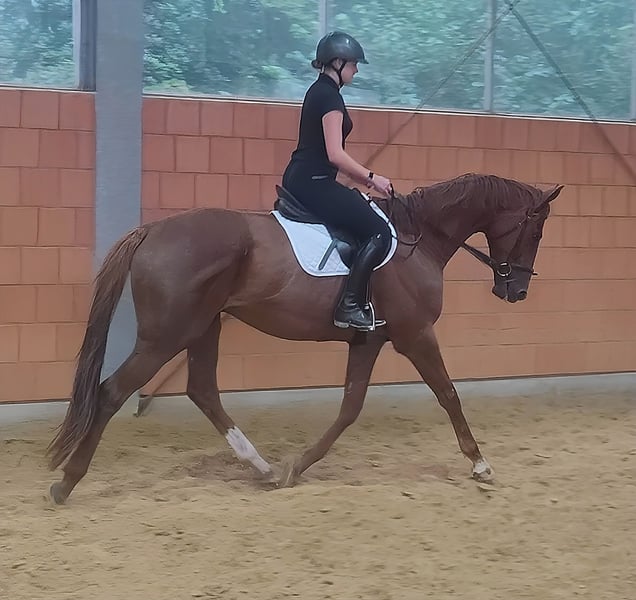 Whisper is a 5-year-old gelding, approximately 180 cm tall, with excellent character traits. He is very comfortable under saddle and extremely easy to position in the bridle. He has a pleasant, smooth movement, making him interesting for riders with back problems. Whisper is suitable for both competitive sports and for demanding leisure riders who want more than an average horse. He has been ridden without any issues by a young lady. He is familiar with the arena, outdoor arena, and trail riding. Due to his impressive size, he also accommodates taller riders well. If needed, he can be sold with complete new equipment for a small additional fee. Transport can be arranged. Trade-in is possible. A veterinary pre-purchase examination can also be conducted by your own veterinarian, including X-rays and blood tests. We look forward to your call at 015172059610. Written inquiries will not be answered. Calls from withheld numbers will be automatically rejected.