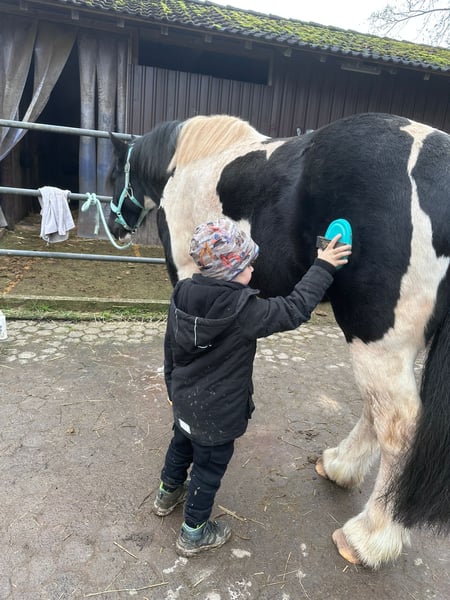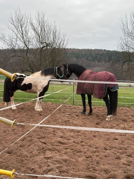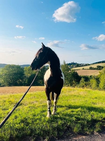 Cailan ist ein achtjähriger lieber, charmanter und sensibler Irish Sporthorse Tinker Mix -Wallach (1,56 m) der Spass und Interesse an der Arbeit hat und der "seinem" Menschen sein grosses Herz öffnet, wenn er das nötige Vertrauen erlangt hat. Cailan sucht neue verantwortungsvolle Besitzer mit Zeit, Geduld und dem nötigen Knowhow um gemeinsam zu wachsen. Er liebt Bodenarbeit, zeigt dabei sehr viel Interesse und reagiert auf feine Hilfen. Er freut sich über jede Aufmerksamkeit und genießt die Zeit und den Umgang mit seinen Menschen. • Jedoch ist Cailan kein Anfängerpferd! Cailan wird als roh abgegeben und braucht eine ruhige, verlässliche Führung die ihm Sicherheit gibt. Im Umgang ist er aufmerksam aber noch unsicher in neuen Situationen und benötigt deswegen durch "seinen" neuen Menschen Geduld und Feingefühl. • Eine konsequente Begleitung durch Bodenarbeit, ganzheitliche Übungen zur Festigung von Vertrauen und Bindung, Langfristig faire, klare Zusammenarbeit auf Basis von Respekt und Sicherheit, machen aus Cailan sicher einen verlässlichen Freizeitpartner. Leider fehlte bisher hierzu die nötige Zeit und auch Knowhow der Vorbesitzer. • Cailan war nie krank, hat gute Hufe, ist schmiede und verladefromm, verträgt 24/7-Weide, kennt auch Offenstallhaltung und Paddockbox. Cailan sucht ein : • 5*-Zuhause mit regelmäßiger Beschäftigung, Fairness und klarer Führung. • Einen geduldigen und erfahrenen Menschen ! Keine Anfragen von Händlern oder Schulbetrieben! Bei Interesse gerne kennenlernen. Absolut Platz vor Preis!