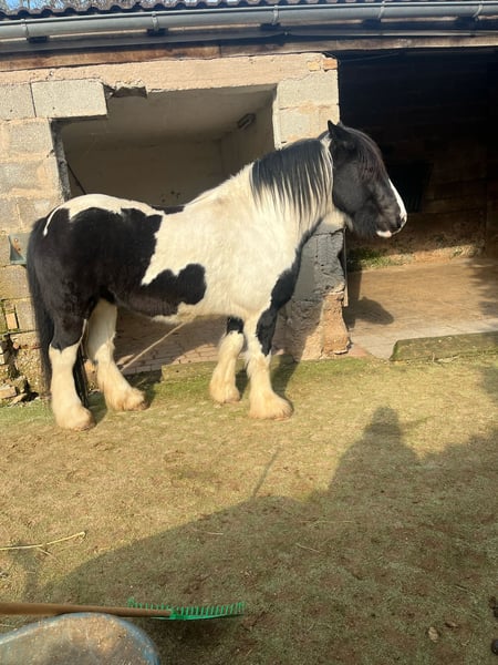 Cailan is an eight-year-old, sweet, charming, and sensitive Irish Sport Horse Cob gelding (1.56 m) with a strong character and a willingness to work. Once he trusts his person, he opens his big heart fully. Cailan is seeking new, responsible owners who have the time, patience, and know-how to grow together with him. Training level: • Currently lightly ridden. Further progress should be made with an experienced, empathetic handler and ongoing training. • Not suitable for beginners! Cailan needs calm, reliable guidance to feel secure. He is attentive in handling but unsure in new situations, so patience and tact from his new person are essential. • Consistent groundwork, holistic exercises to strengthen trust and bond, and a long-term fair, clear partnership based on respect and safety will surely make Cailan a dependable leisure partner. Unfortunately, he has not had the time or expertise for this so far. • Cailan has never been ill, has good hooves, is shod and loading-friendly, and tolerates 24/7 turnout. He is also familiar with open stall management and paddock boxes. Cailan is looking for: • A 5-star home with regular activity, fairness, and clear leadership. • A patient and experienced person. ! No inquiries from dealers or riding schools! If interested, I am happy to arrange a meeting. Absolute priority for the right home over price!