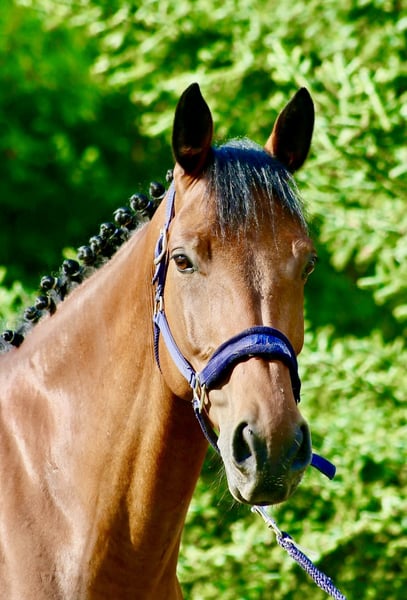 El Paradiso B is a 9-year-old Irish gelding with excellent bloodlines: his sire jumped 1.20 m and his dam successfully competed up to 1.30 m, producing sport horses capable of jumping up to 1.40 m. El Paradiso B is a well-mannered and calm gelding who is always eager to work. He is suitable for both an inexperienced amateur looking to start their competitive career and a professional or experienced rider aiming to train him for higher levels. He is brave and never afraid of fences: he always supports his rider, even when the distance to the jump is not perfect. Having been ridden exclusively by amateurs, he has competed up to 1.15 m; however, he clearly has the potential to jump much higher and has consistently achieved positive results with every rider who has worked with him. In the stable, he is truly sweet and well-behaved: a pleasure to have around, and he can even be handled by a child. He behaves impeccably during transport, at the farrier, and when clipping. In daily flatwork, he is very pleasant to ride, and as he is not a hot horse, he will not scare his rider.