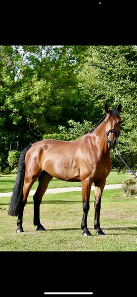 https://esha.horse/Auctions/Item/5508 El Paradiso B is een 9-jarige Ierse ruin met uitstekende bloedlijnen: zijn vader sprong 1.20 m en zijn moeder liep succesvol 1.30 m en bracht sportpaarden voort die tot 1.40 m sprongen. El Paradiso B is een braaf en rustig paard dat altijd bereid is om te werken. Hij is geschikt voor zowel een onervaren amateur die zijn sportcarrière wil beginnen, als voor een professional of ervaren ruiter die hem wil opleiden voor hogere proeven. Hij is moedig en nooit bang voor hindernissen: hij helpt zijn ruiter altijd, zelfs wanneer de afstand naar de sprong niet perfect is. Hij is altijd door amateurs gereden en heeft om die reden tot 1.15 m gelopen; hij heeft zeker de potentie om veel hoger te springen en heeft bovendien altijd positieve resultaten behaald met elke ruiter die met hem heeft gewerkt. Op stal is hij echt lief en goedgemanierd: het is een plezier om hem op stal te hebben en hij kan zelfs door een kind worden gehanteerd. Hij gedraagt zich keurig tijdens transport, bij de hoefsmid en bij het scheren. in de dagelijkse dressuur is hij zeer prettig te rijden, en omdat hij geen heet paard is, zal hij zijn ruiter niet bang maken. El Paradiso B is a 9-year-old Irish gelding with excellent bloodlines: his sire jumped 1.20 m and his dam successfully competed up to 1.30 m and produced sport horses that jumped up to 1.40 m. El Paradiso B is a well-behaved and calm gelding who is always willing to work. He is suitable both for an inexperienced amateur who wants to begin their sport career, as well as for a professional or experienced rider who would like to train him for higher levels. He is brave and never afraid of fences: he always helps his rider, even when the distance to the jump isn’t perfect. He has always been ridden by amateurs and for that reason has competed up to 1.15 m; he certainly has the potential to jump much higher, and he has consistently achieved positive results with every rider who has worked with him. In the stable he is truly sweet and well-mannered: he is a pleasure to have around and can even be handled by a child. He behaves perfectly during transport, at the farrier and when clipping. In daily flatwork he is very pleasant to ride, and as he is not a hot horse, he will not scare his rider. El Paradiso B est un hongre irlandais de 9 ans avec d’excellentes origines : son père a sauté 1,20 m et sa mère a concouru avec succès jusqu’à 1,30 m et a produit des chevaux de sport capables de sauter jusqu’à 1,40 m. El Paradiso B est un hongre calme et bien éduqué, toujours disposé à travailler. Il convient aussi bien à un amateur peu expérimenté souhaitant débuter sa carrière sportive qu’à un cavalier professionnel ou expérimenté souhaitant le former pour des épreuves plus élevées. Il est courageux et n’a jamais peur des obstacles : il aide toujours son cavalier, même lorsque la distance n’est pas idéale. Monté exclusivement par des amateurs, il a pour cette raison concouru jusqu’à 1,15 m ; il possède pourtant un réel potentiel pour sauter beaucoup plus haut et il a toujours obtenu de bons résultats avec chaque cavalier ayant travaillé avec lui. À l’écurie, il est très doux et bien élevé : un vrai plaisir à avoir autour de soi et il peut même être manipulé par un enfant. Il se comporte parfaitement lors du transport, chez le maréchal-ferrant et lors de la tonte. Au travail sur le plat, il est très agréable à monter et, n’étant pas un cheval sanguin, il ne mettra pas son cavalier dans l’inconfort. El Paradiso B ist ein 9-jähriger irischer Wallach mit hervorragender Abstammung: sein Vater sprang 1,20 m und seine Mutter war erfolgreich bis 1,30 m und brachte Sportpferde hervor, die bis 1,40 m sprangen. El Paradiso B ist ein braver, ruhiger Wallach, der stets arbeitswillig ist. Er eignet sich sowohl für einen unerfahrenen Amateur, der seine Sportkarriere beginnen möchte, als auch für einen Profi oder erfahrenen Reiter, der ihn für höhere Prüfungen ausbilden will. Er ist mutig und niemals ängstlich vor Sprüngen: er unterstützt seinen Reiter immer, auch wenn die Distanz zum Sprung nicht perfekt ist. Da er bisher nur von Amateuren geritten wurde, startete er bis 1,15 m; er hat jedoch eindeutig das Potenzial, deutlich höher zu springen, und hat mit jedem Reiter, der mit ihm gearbeitet hat, stets positive Ergebnisse gezeigt. Im Stall ist er sehr lieb und gut erzogen: es ist eine Freude, ihn dort zu haben, und er kann sogar von einem Kind problemlos gehandhabt werden. Beim Transport, beim Schmied und beim Scheren verhält er sich einwandfrei. In der täglichen Dressurarbeit ist er sehr angenehm zu reiten, und da er kein heißes Pferd ist, macht er seinem Reiter keine Angst.