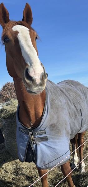 This handsome gelding competed on the flat racing track until the age of five. For the past year, he has been ridden regularly under saddle, although he has been on a break for the last two months due to weather conditions and the lack of an indoor arena. However, I see no issue in resuming work right away. He is very gentle and has no bad habits; he does not rear or buck, and simply tends to move forward when pressure is applied with the legs. I would say he is suitable for riders at an elementary to intermediate level, and not recommended for absolute beginners. His brakes are excellent, even when he starts to run off—though, typical of a racehorse, he responds more to rein aids than to seat. He has been lunged several times with children riding him, and he is extremely friendly and cautious—perfect even for less experienced riders or children who might fidget, so I could also see him working well in a vaulting or trick riding environment. Currently, he is kept in an open stable but actually prefers being in a box. He is very social within the herd, getting along with everyone—big, small, bossy, stallions, or foals. He is familiar with all herd configurations and has never caused any trouble. He is also very calm loading onto a trailer; he walks in quietly and stands perfectly still. Likewise, he is well-behaved at the blacksmith and with my veterinarian. We have never taken him out riding in the field except on a lead, so I cannot comment on his behavior under saddle in the terrain. Handling him on the ground has always been straightforward. In terms of character, he is truly like a dog—always eager for cuddles and closeness. He would never kick or behave oddly.