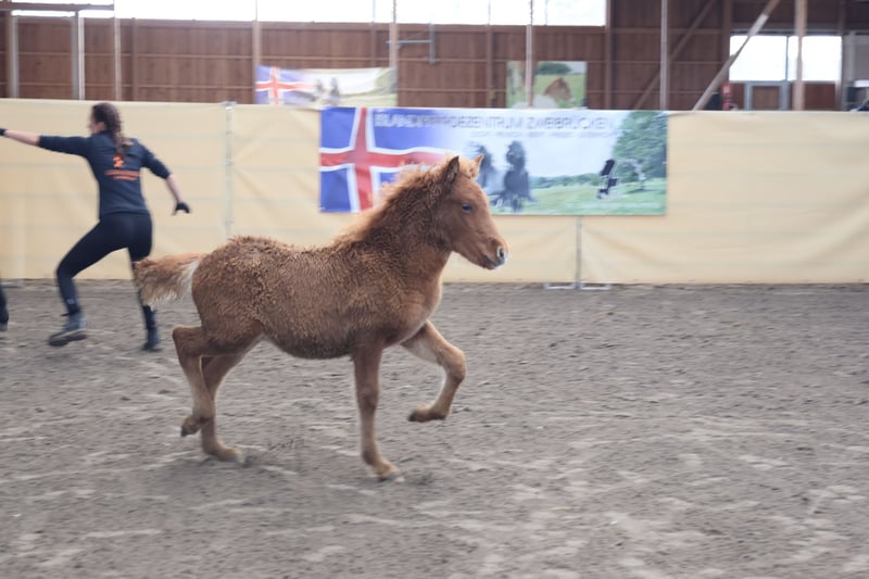 Zum Verkauf steht ein Fohlen/ Absetzter. Das Endmaß wird ungefähr bei 1,40m +- liegen. Er wurde bei uns an der Fohlenbeurteilung gezeigt und konnte hierbei super abschneiden. Exterieur: 8,00 Interieur: 8,00 Gänge: 7,90 Gesamt: 9,95 Richterspruch: Lauffreudiges Hengsfionfeh, fünfgangveranlagt, mit gleich viel Tölt und Trab bei mittlerer Tempofähigkeit und weiten Bewegungen. Er wird nächsten Monat abgesetzt. Gerne bei uns melden.