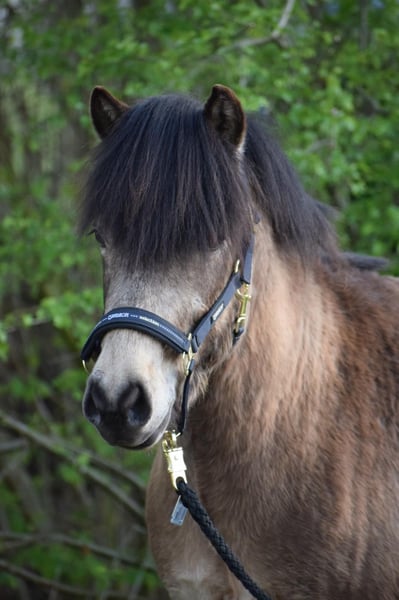 Keilir by Seimur, an interesting colored stallion with a future. His color is called brown silverisabell (earth colors). He is a very calm young stallion, with a perfect character, 5 gaited, the tölt also stands out! His final height is expected to be 1.44m, his pedigree top, his dam, the elite mare, Snót by Seimur, his sire the well-known Kjarkur by Seimur. His uncle, the elite stallion, Stakkur by Seimur, his grandmother the legendary Naela vom Adlerhop etc... You just have to get to know him, he should be presented as a 5-year-old, Fizo, ridden. But he is also very interesting as a stud stallion. He stands with the young stallions 1 - 4 years old in our pastures, next to the young mares. He can be used as a breeding stallion, but also for sport and leisure. More details per PN.