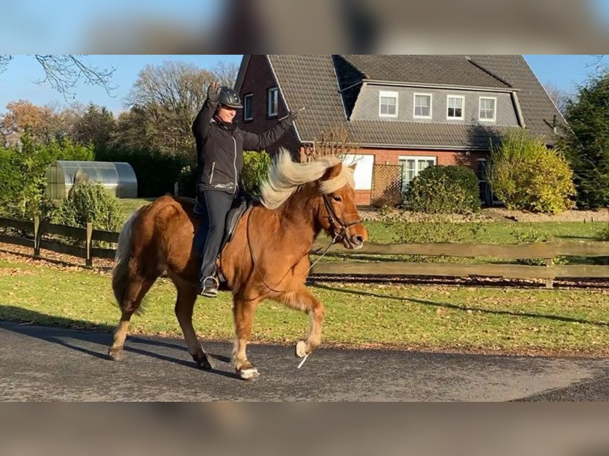Die 2016 geborene Þórdís ist eine außergewöhnlich hübsche Islandstute mit einer seltenen, faszinierenden Farbe: Braun-Windfarb-Falbe. Mit ihrem harmonischen Körperbau und einem Stockmaß von 1,43 m zieht sie alle Blicke auf sich und vereint Schönheit mit vielversprechender Leistungsbereitschaft. Als Fünfgängerin stammt Þórdís aus einer herausragenden Linie – ihr Vater ist ein Elite-geprüfter Viergänger. Diese Gene zeigt sie deutlich in ihrer Qualität: Ihre Gänge sind fließend, weich zu sitzen und machen jede Reiteinheit zu einem Erlebnis. Besonders ihr natürlicher, lockerer Tölt sorgt für viel Reitspaß und ein angenehmes Gefühl im Sattel. Charakterlich ist Þórdís ein sprudelndes, fröhliches Pferd, das mit ihrem freundlichen Wesen jeden begeistert. Sie ist ideal für einen etwas geübteren Reiter, der ihre Lebensfreude und Energie schätzt. Im Gelände ist sie ein Traum – sicher, leicht zu reiten und immer mit guter Laune dabei. Þórdís ist eine wahre Töltmaus, die jeden Tag aufs Neue begeistert und sowohl als Freizeit- als auch als leicht sportlich orientiertes Pferd viel Freude bereiten wird. Wenn Sie sich eine außergewöhnlich hübsche, fröhliche und talentierte Partnerin wünschen, könnte Þórdís genau die Richtige sein. Kontaktieren Sie uns gerne, um diese besondere Stute kennenzulernen!