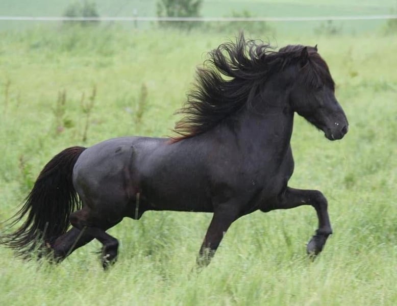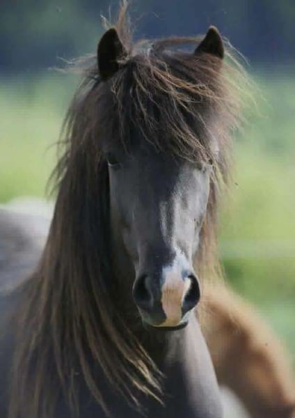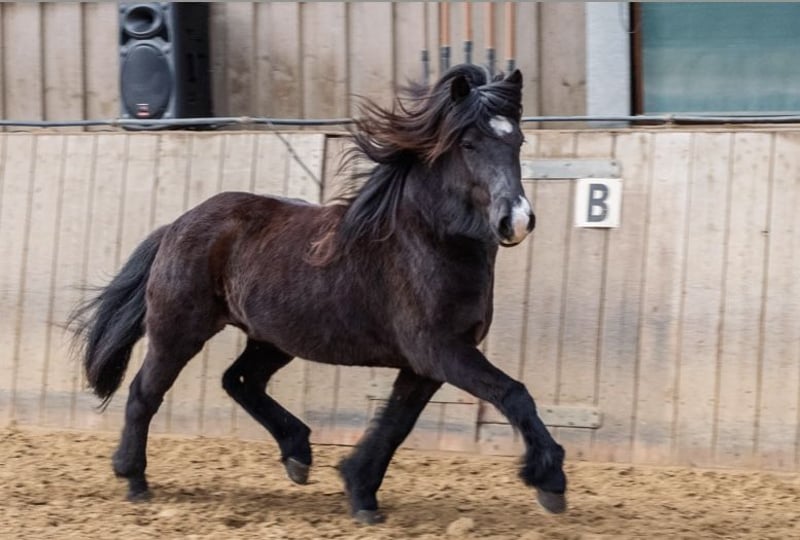 Hnoss von Berlar - deutsch gezogen, kein Import - Stute, 10 Jahre - Klar getrennte, schicke Gänge mit Takt - Top-Abstammung: Tochter von Thróttur frá Hvalnesi (Elitehengst & Top-Vererber, Ehrenpreis für Nachkommen) und Elja von der Igelsburg. Thróttur: Fizo 8,34. VV: Glampi frá Vatnsleysu. MV: Orri frá Thúfu - Langhaar & natürliche Doppelmähne - Rappstute mit Splash - Viergängerin - Professionell ausgebildet in Berlar - Keine Krankheiten, Allergien oder Verletzungen - Stockmaß 138 - menschenzugewandt, motiviert, lauffreudig. Nicht für ängstliche Personen. - Harmonisch & unkompliziert in der Herde -Standort: 40883 Ratingen (NRW) Sie ist dein Traumpferd, wenn: …wenn du Freude an einem lauffreudigen Pferd hast und Spass daran, ab und zu mal flotter unterwegs zu sein. …Du ein sehr zutrauliches, interessiertes und lernfreudiges Pferd suchst. Ein gesundes Pferd mit Herz, was viel mit dir kommuniziert ….wenn du Ausstrahlung, großen Puppenaugen und Charakter nicht widerstehen kannst. Sie ist NICHT dein Traumpferd, wenn: …Du ängstlich bist …Du ein sehr ruhiges oder „stumpfes“ Pferd suchst, was sich von nichts aus der Ruhe bringen lässt Sie ist kerngesund: Keine Krankheiten, keine Allergien, keine Verletzungen. Charakter: Hnoss ist eine sehr menschenfreundliche Stute, die gerne etwas mit Menschen unternimmt, aufgeschlossen und interessiert ist, Feedback gibt (und auch eine Meinung hat ;)) und schnell lernt. In der Jungpferde-Materialprüfung wurde ihr Charakter mit 8,1bewertet. Sie kennt nichts Böses von Menschen, ist zutraulich & kuschelig. Gleichzeitig ist sie vom Temperament her quirlig und kann in neuen,unbekannten Situationen schonmal aufgeregt/guckig sein. Deswegen ist sie kein Pferd für ängstliche Personen.Sie ist sensibel für Wahrnehmung und Stimmungen, lernfreudig, will gefallen und arbeitet motiviert mit. Sie ist sehr fein in der Bodenarbeit, reagiert super auf Körpersprache und Stimme und wäre sicher auch für Freiheitsdressur ö. ä. sehr gut geeignet. Sie lernt extrem schnell. Sie ist aufgeschlossen und bewegungsfreudig. Sie ist kinderlieb aber aufgrund ihres „Go“ kein Kinder-Reitpferd (natürlich kann man Kinder führen, sie putzen lassen, etc, da ist sie sehr lieb.) Unter dem Sattel: Hnoss verfügt über sehr klar getrennte, schicke Gänge mit Takt. Der Trab ist sicher, „unkaputtbar“ & raumgreifend. Sie bringt viel Tölt und einen gesprungenen Galopp mit. Der Schritt wurde bei der Jungpferdebeurteilung als „außerordentlich gut“ im Richterspruch betont, kann aber zu Beginn der Reiteinheit schonmal etwas zackeliger sein, wenn sie es eilig hat…sie ist keine Schlafmütze! ;) Im Futurity ist sie fünfjährig in Berlar mit 6,8 benotet worden. Trotz ihres Talents und ihrer Austrahlung sehe ich sie aufgrund ihrer Sensibilität eher als Luxusfreizeitpferd (als als Turnierpferd). Sie kennt Halle, Roundpen, Ovalbahn und geht alleine (und in Gesellschaft) ins Gelände. Autos, Schüsse, o.ä. stören sie nicht. Hunde können sie anspringen, anbellen oder vorbei rasen, sie bleibt da gelassen. Abstammung: Hnoss kann eine Top-Abstammung vorweisen und wurde deutsch gezogen. Sie ist direkte Tochter von Thróttur frá Halvanesi (Elitehengst Fizo 8,34 & Top-Vererber, Ehrenpreis für Nachkommen. VV: Glampi frá Vatnsleysu. MV: Orri frá Thúfu), ihre Mutter ist Elja von der Igelsburg. Von ihrem Vater hat sie nicht nur ihre Schönheit & Ausstrahlung, sondern auch ihr gutes Exterieur, das Splash-Gen und die schöne Gangveranlagung geerbt. Natürlich wäre sie auch für die Zucht interessant! In der Herde: Unkompliziert & harmonisch. Friedlich und sozial, auch gegenüber fremden Pferden. Sie geht jedem Streit aus dem Weg und ist „unauffällig“ im mittleren Rang. Sie ist auf hügeligen Weiden im Sauerland im Herdenverband groß geworden und steht im Offenstall. Sie ist interessiert an Fohlen. Sie steht in 40883 Ratingen, bei Düsseldorf (NRW). Platz vor Preis! Fotos: Hnoss, erwachsen und als Fohlen. Rappe mit Stern, ohne Schnippe: Ihr Vater Throttur