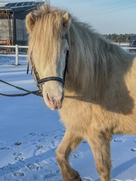 For Sale: Eye-Catching Icelandic Mare with Lots of Charisma We are offering a beautiful, sweet Icelandic mare born in 2015. She is a Perlino, which gives her a unique and striking appearance. With a height of 138 cm (approximately 14.1 hh), she is suitable for larger riders as well. Fröken impresses with her smooth gait and friendly nature. She is solidly trained and suitable for leisure riders, as well as for participation in recreational riding or, with further training, for competitive sport. She has been covered once and foaled a very good-moving Palomino colt in 2024, who is quite eye-catching in color. Skàti was awarded at the foal show. Due to lack of time, Fröken is available for sale. Additional photos, including under saddle, can be sent upon request. If you are interested or have further questions, please feel free to contact me. Viewing and trial riding (€30.00 deposit) are possible by arrangement.
