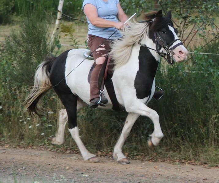 Genesis est née en 2013 chez moi et est en bonne santé depuis, sans dermatite, vermifugée et vaccinée. Depuis son jeune âge, elle a été manipulée avec soin et est également ferrée et habituée au transport. Exempte de vices et facile à manipuler au quotidien, elle se distingue par son caractère honnête, intelligent et amical. Elle a été inscrite au livre des juments avec une note de 7,9 pour ses allures et son intérieur. Ses poulains précédents impressionnent par leur caractère, leurs capacités d'allures, leur développement et leur couleur. Genesis elle-même a plutôt un type ancien avec un maximum de 136 cm, tout en étant compacte et harmonieusement construite avec une touche sportive et un bon fondement, ce qui lui permet de convenir à des cavaliers adultes ou adolescents pesant jusqu'à 75 kg. Dotée d'une aptitude au cinq allures, elle possède de bonnes allures de base, sûres et expressives, avec beaucoup de tölt naturel et un bon pas. Elle a été montée pour la première fois l'année dernière et s'est montrée assidue et coopérative. Elle réagit très bien aux aides vocales et au poids, nécessitant peu d'intervention de la main et de la jambe. Elle n'est donc pas un cheval pour les cavaliers maladroits et n'est pas adaptée aux débutants ou aux cavaliers anxieux. Quelqu'un qui recherche un cheval nécessitant peu d'aides mais qui est néanmoins réactif trouvera en elle un bon partenaire, car elle est fine à monter, réagit toujours aux aides et n'est pas sensible. Que ce soit pour des balades tranquilles en extérieur ou pour des performances exigeantes, tout est possible avec elle. Elle a principalement été montée seule en extérieur, mais se comporte également de manière exemplaire en compagnie d'autres chevaux et est montable à tout moment. Malheureusement, elle est à nouveau à l'herbe depuis un certain temps en raison de mon manque de temps et est donc actuellement en dehors de forme et devrait être réentraînée depuis le début et un peu amincie. Elle pourrait bien sûr également être réutilisée comme jument de reproduction à tout moment. Genesis a une bonne lignée solide et, grâce à son père pie noir, elle est également particulièrement colorée. En tant que pie noir, elle porte en plus un gène splash et est testée homozygote pour le noir. Cela en fait une garantie de couleur, car des descendants de couleur alezane sont exclus à 100 %. Vous pouvez la rencontrer personnellement. Une visite vétérinaire peut être organisée. Pas de réservation et pas de mise à disposition. Transport possible en Allemagne contre remboursement des frais. Vente uniquement au sein de l'UE. Premier contact uniquement par e-mail, si un intérêt sérieux existe, on peut également discuter par téléphone ou WhatsApp.