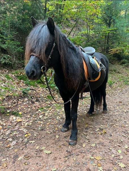 For personal and financial reasons, I am seeking a new, suitable home for my Icelandic mare. She has been a part of my life for 11 years, which is why finding her a really good place is especially important to me. This lovely mare, with plenty of feather, impresses not only visually but also through her affectionate character. Her rather petite size makes her particularly suitable for lighter or less tall riders. She is a motivated, friendly horse with a moderate temperament that simply brings joy and enjoys going forward. Her willingness to work and positive attitude towards training are as evident as her pleasant riding qualities. As a four-gaited horse, she has a secure, beautiful trot. In recent years, her focus has mainly been on relaxed rides in the countryside, both alone and in groups. She calmly accepts accompanying dogs, which is no problem. She is also familiar with work on the riding arena. Currently, due to lack of time, training has been limited, but she remains motivated and eager to be engaged. She has already been ridden by a child, which she handled well. Due to her lively nature, I see her less suitable for absolute beginners, but experienced leisure riders will find her to be a wonderful, fun, and reliable partner. In everyday handling, she is uncomplicated, easy to shoe, and easy to load. She currently wears four shoes. Dental check-ups and vaccinations are regularly and annually maintained. Her current housing is in an open stable within a herd of mares, with additional turnout in summer. I would like this to remain her future arrangement. She has a mild summer eczema, which can be well managed with an appropriate blanket. She is currently fed haylage, which she tolerates without any issues.