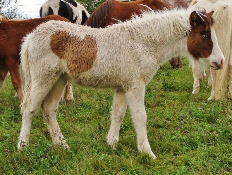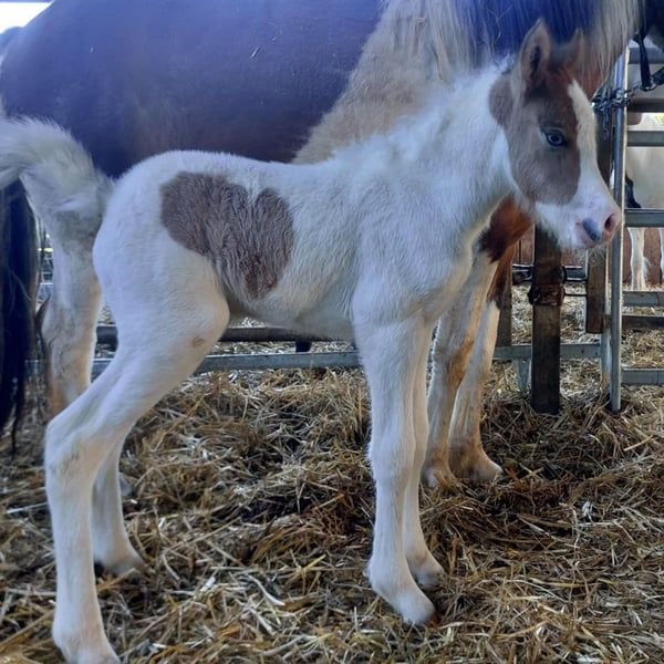 Ich biete hier für kurze Zeit die Gelegenheit eine Farbbombe mit guter Abstammung und schicken Gängen zu Absolutem günstigem Festpreis zu erwerben. Bifröst ist via Test bestätigt Braunfalbschecke mit Splash. Daher ihre aussergewöhnliche Zeichnung die sie überall hervor stechen lässt. Zusätzlich ist sie bei späterem Zuchteinsatz ein Farbgarant da sie reinerbig Schecke ist und daher alle ihre Nachkommen zu 100 % Schecken sein werden. Bifröst ist bei mir geboren, seitdem gesund und regelmäßig entwurmt, Ekzemfrei aus Ekzemfreien Eltern und Großeltern. Sie ist den Mensch gewöhnt und begegnet ihm Unartenfrei, respektvoll, neugierig und freundlich. Ihre Hufe wurden regelmäßig Freistehend geschnitten und auch das Verladen und im Hänger gefahren werden hat sie durch Weideumtrieb positiv kennengelernt. Ihre Vollen Papiere liegen vor, mit Heljar fra Brekknakoti als Opa und väterlich Bekan fra Kolsholti, Glampi fra Vatnsleysu und weitere bekannte gut geprüfte Hengste bringt sie eine ansprechende Abstammung mit. Bifröst zeigt sich Fünfgängig in den ersten Lebensmonaten war der Tölt ihre liebste Gangart bis sie den Trab gefunden hat. Auch Pass wurde Freilaufend schon gesichtet. Aktuell bevorzugt sie meistens ihre guten und sicher vorhandenen Grundgänge. Den Tölt zeigt sie gerne immer noch mindestens in den Übergängen manchmal aber auch Streckenweise. Alle ihre Gänge sind raumgreifend mit gutem Tempo und schöner Haltung. Ihre Mutter ist eine große kräftige Stute und auch ihr Vater bringt ein stabiles elegantes Gebäude mit. Bifröst ist gut entwickelt, aktuell ein großes propperes mädel daher gehe ich davon aus das sie mindestens 140 Endmaß erreichen sollte mit kräftigem etwas elegantem Gebäude. Ich sehe ihre Zukunft in gehobener Freizeit, Zucht und Sport. Wer die süße Maus kennenlernen möchte darf gerne mit Termin vorbei kommen. Sie kann jederzeit in ein neues Zuhause umziegen. Es gibt kein Video und auch nicht die Möglichkeit eins zu machen. Wer wirklich Interesse hat der kommt vorbei und lernt sie persönlich kennen. Wer so wie ich früher ist und auch mal ein Pferd nur anhand von Fotos kaufen möchte dem stehe ich nicht dagegen. Bei echtem Interesse freue ich mich auf Nachricht.