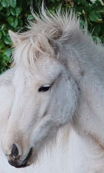 Svandis vom Steenkamp Isabell (couleur de vent) Née en 2023 Quatre-gaité avec beaucoup de Tölt et de rythme Hauteur estimée supérieure à 140 cm au garrot Caractère amical, proche de l'humain
