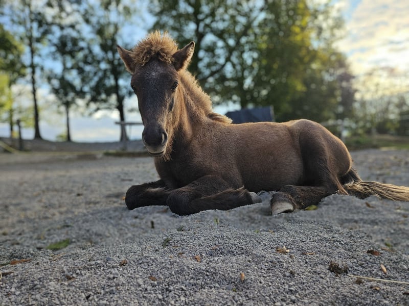 Sire: Glanni von der Norderheide (DE2013110559) Dam: Kolgríma frá Tungu (IS2014266051) Gaits: 5-gaited Kría is a 4-year-old, five-gaited Icelandic mare. She is not yet broken in, but she is well acquainted with all the basics: tying, trimming, brushing, leading, and lunging. She is calm and non-confrontational within the herd, sensitive, and responsive to her handler’s non-verbal communication. Kría shows a lot of promise for the future and would make a wonderful partner for someone who values sensitivity, willingness, and a kind temperament. Afdrif Afdrif is Kría’s 6-month-old colt. Ideally, I would like to see him move together with his mother to their next home, so that he can be weaned in peace. I’m trying to find them a home together. For both is price 5000€.