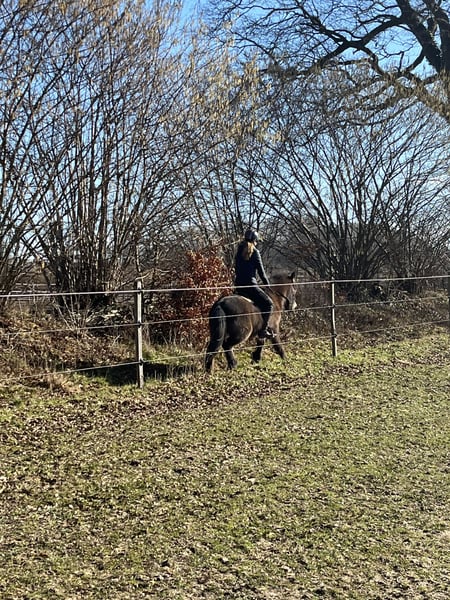 Kringla ist eine 2021 geborene Islandstute in der besonderen Farbe Dunkelerdfarben. Sie ist viergängig veranlagt und zeigt Tölt bisher in den Übergängen. Sie wurde bei uns im Rahmen des IPZV Jungpferdebereiters ausgebildet und zeigt sich gelehrig und motiviert. Sie kennt die Arbeit in der Halle, auf der Ovalbahn und im Gelände. Sie geht als Handpferd und an der Doppellonge. Kringla ist mutig und unerschrocken. Nach der dreimonatigen Grundausbildung muss sie weiter ausgebildet werden, wird aber sicher ein tolles Familienpferd. Durch ihre gute Abstammung und ihr korrektes Gebäude, ist sie auch für die Zucht interessant. Sie ist das letzte Jahr bei uns aufgewachsen und war immer gesund. Sie hat kein Ekzem. Kringla ist bereit, in ein neues Zuhause umzuziehen. Der Preis steigt mit weiterer Ausbildung.