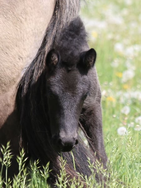 We are selling our Icelandic mare Svarta-Fina from Birkenberg, born in 2021. She has everything you could wish for: • Excellent gaitedness and top temperament • Outstanding pedigree – her dam, twice World Champion for France, is the legendary mare Nattrun • Very good conformation, currently standing at 1.40 m • Currently being backed and showing a very easy ride • Sensitive, eager, yet relaxed with new experiences Fina has the potential to become a fantastic riding horse with her calm nature and strong genetic qualities. Her mother, Lineik von Asgard, was highly successful in tölt races, tölt tests, five-gait competitions, and tölt evaluations. She was also a reliable partner in the field, in hand, and despite her extreme speed in tölt, she could always be stopped promptly in any situation. Her sire, Náttar von Mönchhof, is a son of the legendary pass mare Nattrun v. Troellastadir, bred by Jens Füchtenschnieder. He has the appearance of a small Friesian with excellent basic gaits and a beautiful tölt. Unfortunately, Fina has a mild eczema. However, she was able to stay outside with a blanket all summer in the herd without issues. This presents a good opportunity, as she is being sold well below her value due to this condition. Fina can stay with us at the farm or continue her training here (Trainer A, C). The price will increase with further training. Gaited Horses Birkenhof Phone: 0151-67580759