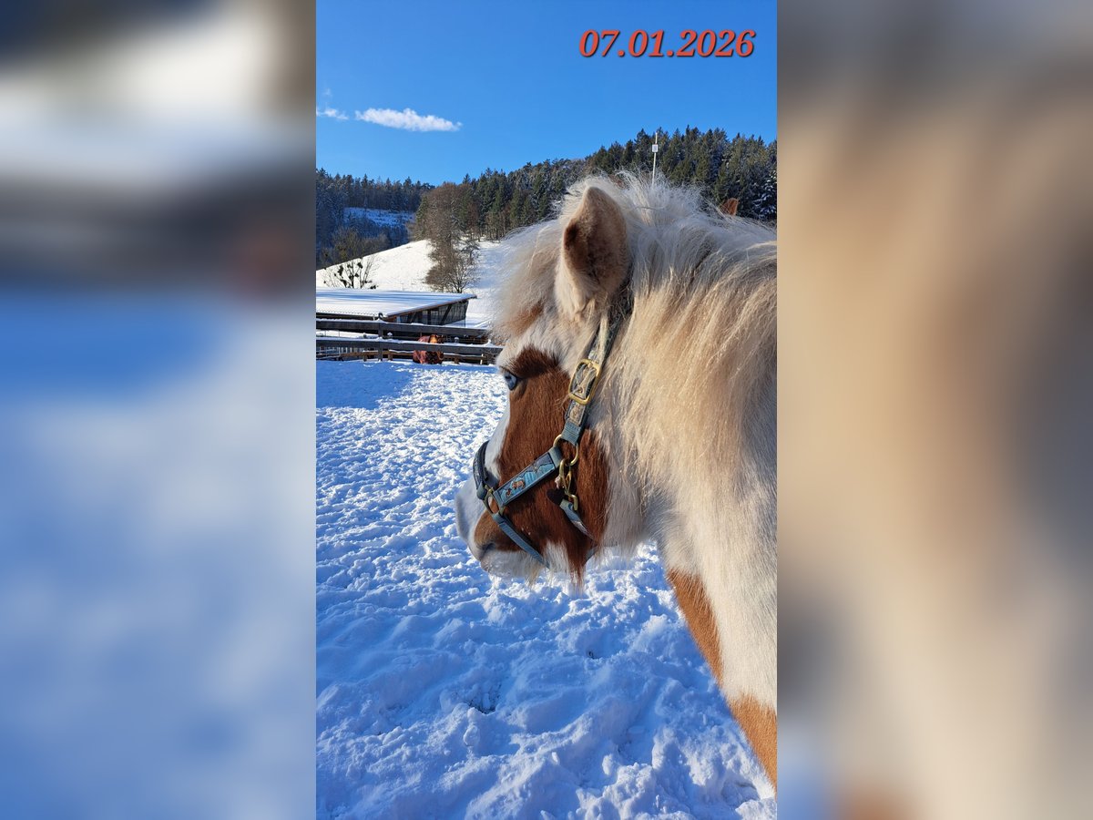 Gloría vom Holtdorftal ist eine knapp 5 jährige Isistute und momentan 1, 41 m groß. Sie kam im September 2024 mit einer weiteren Zuchtstute direkt vom Züchter zu mir. Sie war tragend für 2025. Sie ist dort auf großer Fläche im Herdenverband aufgewachsen und war nur halfterführig. Ich begann mit Ruhe die Jungpferdeausbildung und die Basisausbildung. Sie bekam am 14.05.2025 ein sehr großes, gut gebautes Hengstfohlen. Die Geburt hat sie ganz toll gemacht und man durfte auch von Anfang an an ihr Fohlen. Januar 2026 wurde das Fohlen abgesetzt, hat sie super souverän gemeistert. Sie wurde schonend von mir im Sommer 2025 gebisslos angeritten. Sie kennt in der Bodenarbeit die Arbeit am Kappzaum, an der Wassertrense, Longenarbeit, Equikinetik, Stangenarbeit. Sie kann am Kappzaum sowie an der Trense Schenkelweichen, Schulterherein. Travers sind wir langsam am beginnen. Kleine Zirkustricks machen ihr super viel Spaß. Freiarbeit macht sie gut und sehr fein. Unter dem Sattel geht sie super entspannt ins Gelände, auch wenn ihr Fohlen zuhause geblieben ist. Stute und Fohlen konnte man immer zum Arbeiten toll voneinander trennen. Wir gehen überwiegend alleine ins Gelände in allen Gangarten. In der Gruppe kann sie sehr gut hinten bleiben und lässt sich stets durch einen Pfiff anhalten auch wenn andere Pferde weiter galoppieren. Sie geht unter Flatterband durch, über Planen. Große Arbeitsmaschienen, Autos, Hunde, Wanderer war bis jetzt alles kein Problem. Unser Reitplatz ist sehr klein, da geht sie Schritt und Trab Bahnfiguren und Anfänge vom Seitwärts. Sie hat ganz tolle bequeme und flüssige Gangarten. Ich lege großen Wert auf eine korrekte klassische Ausbildung. Sie hat einen schönen raumgreifenden Trab mit schöner Halsung. Der Galopp hat eine schöne Aufwärtstendenz. Bei mehr Kraftzuwachs wird man diesen schön versammeln können. Der Schritt ist fleißig, aber nicht über Tempo und keine Passverschiebung. Auf der Wiese und unter dem Sattel kann sie schon schöne Strecken im Tölt halten. Sie steht bei mir im Winter in einem Offenstall mit Wiese und 24h Zugang zu Heu. Im Sommer 24 h auf großen Wiesen. Sie ist absolut freundlich zu allen Pferden egal ob in der Herde oder zu fremden Pferden. Sie ist regelmäßig entwurmt, geimpft und alle 6-8 Wochen werden die Hufe bearbeitet. Sie läuft hier barfuß und das auch gut im Gelände. Bei größeren Runden hat sie vorne Schuhe an. Hinten hat sie bis jetzt keinen Schutz gebraucht. 18 12.2025 wurden die Zähne gemacht. Protokoll vorhanden, Tierärztin super zufrieden. Ich habe sie als Zuchstute im Stutbuch 2 eintragen lassen. Sie ist ein sehr sensibles, arbeitswilliges Jungpferd. Du solltest dich mit Jungpferdeausbildung auskennen oder Unterstützung haben. Bei Interesse und Fragen sehr gerne per Whats App melden, 015757999782.