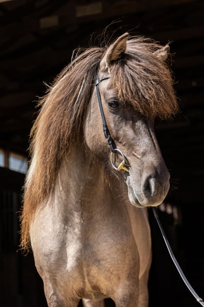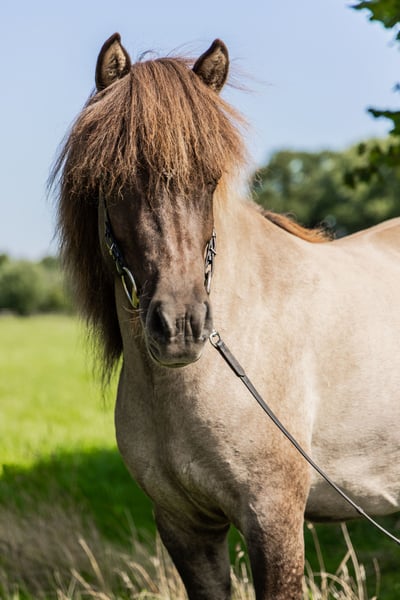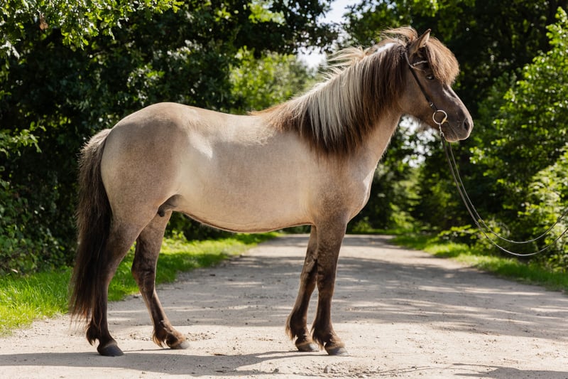 Description: Gydja is a four-gaited mare sired by Kopernikus vom Heesberg, a highly rated and very successful stallion. She is characterized by her reliability, rideability, and calm demeanor, making her suitable for both ambitious leisure riding and with potential for sport and breeding. Conformation: Gydja features harmonious proportions, a strong and correct foundation, and dense, good-quality coat. Well-developed musculature emphasizes her solid and athletic appearance. Temperament: Gydja displays an exceptionally people-oriented, attentive, and considerate character. She consistently pays attention to her rider, both when ground-driven and under saddle. She is friendly, calm, and reliable in her interactions with children. Within the herd, she is socially integrated and uncomplicated. Gaits: Gydja is a diligent, friendly, and uncomplicated four-gaited mare with even gait distribution. Her especially soft and rhythmic tölt, which is easy to elicit and currently being further developed, is particularly noteworthy. She has good movement potential and shows promise for both sport and demanding leisure riding. Training Level: Gydja's basic training is complete. She responds well to aids and can be ridden confidently both alone and in a group. She is familiar with different riding arenas and terrain, always demonstrating composure. Suitable For: In addition to her suitability as a reliable leisure and sport horse, Gydja is also very well suited for breeding. She has already foaled a foal and thus possesses valuable breeding qualities. Sire: Kopernikus vom Heesberg is a highly rated elite stallion with a strong Saudárkróki and Ófeigur-882 bloodline. He combines the proven qualities of influential sires such as Kolskeggur 1278 frá Ásmundarstödum (powerful hindquarters, high front-end action), Náttfari 776 frá Ytra-Dalsgerdi (clear gait separation, fast gaits), and Sörli 653 frá Saudárkróki (friendly character, smooth movements). He is regarded as a versatile sire with excellent pedigree connection options and passes on all five gaits with high, flowing movements, excellent temperament combined with high rideability, and an elegant yet sturdy build. Both sport and breeding-wise, Kopernikus ranks among the outstanding stallions of his generation. His FIZO total score of 8.35 in Zachow, with top marks in tölt (8.5), pass (9.5), and character/willingness (9.0), underscores his exceptional quality as a sire. Dam: Glæsa vom Kranichtal is an expressive, very typy mare with a strong, compact build and clear proportions. She impresses with good self-carriage, uprightness, and conformation, as well as a strong gaitedness inherited from the proven Laxnes line. As an already successful broodmare, she has produced multiple champion foals and possesses valuable traits both sportingly and genetically. Her character is balanced, friendly, and characterized by good temperament. Health Status: Gydja is free of exmo and is in a very well-maintained, healthy condition. Price Category: B – up to €20,000