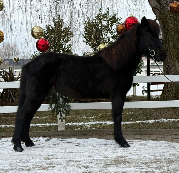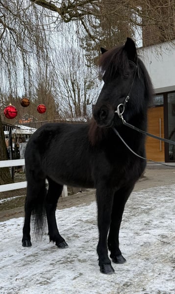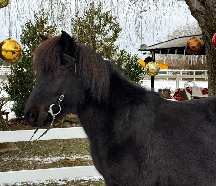 Dísa of Svennebjerg Mare, 16.1 hh *Born in Germany in 2017, free of eczema Black mare without markings Four-gaited riding horse Veterinary certificate available ✅ Sire: Avaldi frá Garði 8.05 (Ext. 7.96, Re. 8.10)‼️ Dam: Tjörvi frá Sunnuhvoli 8.46 (Ext. 8.44, Re. 8.47)‼️ Mother: Ísafold of Svennebjerg Grandfather: Viktor frá Diisa 8.63 (Ext. 8.48, Re. 8.74)‼️ Dísa is our little sweetheart in the stable. You couldn’t find a sweeter or more gentle mare. She loves being groomed and cuddles incredibly well. Due to her temperament, her delicate and elegant build, she is perfect for therapeutic riding, especially with children. This mare also brings a smile to everyone’s face because her gaits are clearly separated, incredibly beautiful, and so easy to ride that every ride becomes a pleasure. Dísa can be enjoyed as a leisure horse or ridden in sport. Her pedigree is also quite impressive, featuring well-known names like Viktor frá Diisa, making her highly interesting for breeding. She has already foaled a healthy foal. Dísa knows everything one needs to know in the terrain and is a totally cool and relaxed ride. She can be ridden alone or in a group, never tries to be first, and can always be slowed down and controlled. While she may not be the tallest mare, she has a big heart, fantastic gaits, and working with her is simply a lot of fun and a huge pleasure. Anyone interested in meeting and trying our adorable mare is welcome to do so by appointment at our place in A-5221 Lochen am See.