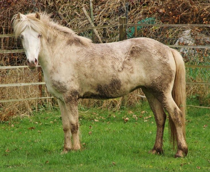 Moja piękna Titania szuka swojego na zawsze domu. Urodziła się u mnie w 2016 roku i do tej pory była wyłącznie klaczą hodowlaną. Ze względu na problemy porodowe, które wystąpiły w tym roku, nie powinna już dłużej brać udziału w hodowli. Do początku 2026 roku będzie miała jeszcze swoje ostatnie źrebię na nóżkach i może przeprowadzić się do nowego domu dopiero po odstawieniu. Titania jest wolna od ekzemów i nie ma żadnych urazów. Niestety, cierpi na chorobę, która jak dotąd jej nie ogranicza i objawia się jedynie jako widoczny defekt kosmetyczny latem. Dlatego też oddaję ją w bardzo dobre ręce, w które będzie miała czas na pracę z nią. Niestety, mam ogromny brak czasu, dlatego decyduję się na redukcję i uważam, że szkoda, aby od przyszłego roku stała tylko na pastwisku bez zajęć. Po odstawieniu źrebięcia mogłaby rozpocząć szkolenie na końskiego rekreanta. Pod względem charakteru jest to klacz skarb, która wszystko wykonuje posłusznie, jest dobrze zsocjalizowana w stadzie i zachowuje się spokojnie. Jej temperament jest raczej zrównoważony, z jasną głową, połączoną z pracowitością i chęcią do biegania. Podczas wpisu do księgi hodowlanej wyróżniła się dużą szybkością w podstawowych chodach, często z łatwością przechodząc z szybkiego stępa do równie szybkiego tölta, co świadczy o jej dużym potencjale do tego chodu. Zakładam, że jak jej matka, prawdopodobnie pod siodłem, na stromym odcinku, sama zacznie wyciągać tölta. Chociaż do tej pory nie pokazała pasowania na wolności, wierzę, że ten talent w niej drzemie. To daje też świetną możliwość, by skupić się na wykształceniu jej jako czterobiegowego konia. Ze względu na jej dotychczasowe warunki życia, jest przyzwyczajona do wielu sytuacji, co czyni ją stosunkowo odważną i spokojną w nowych sytuacjach. Dzięki dotychczasowej obsłudze jest posłuszna przy halterze, można ją łatwo przywiązać, czyścić, prowadzić, a także jest przyzwyczajona do pielęgnacji kopyt i załadunku. Jest regularnie szczepiona przeciw tężcowi i grypie, a także odrobaczana. Z jej pięknym perłowym, jasnym umaszczeniem z niebieskimi oczami i piękną grzywą wygląda jak jednorożec lub księżniczkowy koń. Ze względu na jej charakter i usposobienie, przy odpowiednim szkoleniu, będzie odpowiednia zarówno dla dzieci, jak i dorosłych. Dzięki solidnemu fundamentowi i jej wzmocnionej wysokości 137 cm, z łatwością może unieść dorosłego jeźdźca o masie do 70-75 kg. Chętnie można ją poznać osobiście. Proszę o kontakt wyłącznie w przypadku naprawdę poważnego zainteresowania i przeczytania tekstu.