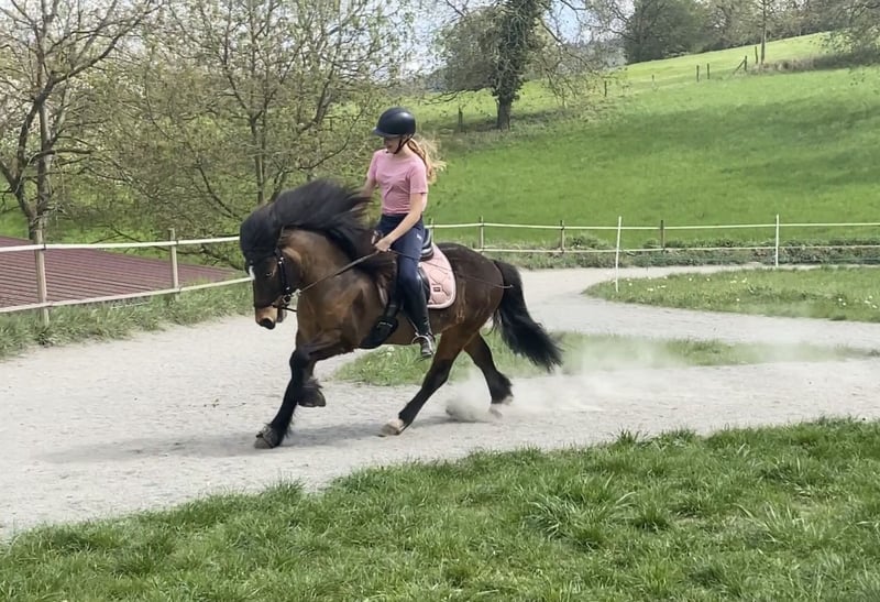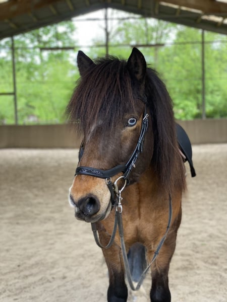 Sell my Icelandic gelding Simba fra Akurgerói, born April 18, 2014 Gelding, dark bay with two blue eyes, 13.5 hh (Sire: Óskasteinn frá Íbishóli) More pictures can be found on Instagram under: Die_ponys_vom_Erdbeerfeld Too good to be true! He comes with full tack. All equipment is in excellent condition. He has a recently fitted Champion Rider Evolution saddle. Includes rain sheet from Sportsfreund, cooling blanket from Sportsfreund, saddle pads, two bridles, halter, rope halter, fly mask, and shipping boots – all included. Sold only due to switching to dressage riding. He is an absolute dream, consistently reliable, a true all-rounder, well-trained, in top condition, and also stunning with a magnificent mane and tail! He handles everything calmly and trusts 100%. NO eczema or other health issues! He lives in a paddock with 24/7 haylage, and in summer, he’s on pasture day and night. My daughters, then aged 8 and 10, learned to ride on him. He was in regular training with Lukas Hiesinger (Hemsberg Stud) for over 5 years. He has participated in numerous clinics with Lukas Hiesinger, Laura Grimm, and Stefan Hackauf (competition judge) under my daughter and me. Currently, he has been in dressage training for a year, twice weekly, with Miriam Weiß (who has competed successfully up to M-level dressage and S-level jumping). He is currently trained up to L-level dressage! He goes into water, children can play on his back, and he loads onto the trailer like a pro. He loves free jumping and is always reliable in the terrain, whether walking or racing at full speed for fun! He is perfect for riding with a halter, extreme trail, indoor arena, outdoor training, oval track, longe line, treadmill, stopping in a beer garden – he masters all effortlessly! Riding alone, competing alone, he remains calm and composed. No fear of cyclists, tractors, traffic, or anything else. Why am I selling such a horse?! My daughter simply developed a different interest and never truly enjoyed the Icelandic horses. Since we want to continue our riding hobby together, I’ve decided to switch back to classical riding without the 4th and 5th gaits. It’s very hard for me to part with him, but now my focus is on a different riding discipline. He deserves a rider who appreciates his versatility and excellent training. Anyone who has had a horse in training knows what good training costs! For me, good training and proper riding have always been essential for his health. He is dewormed three times a year, had a dental check-up on January 27, 2026, and is fully vaccinated against tetanus, influenza, and herpes! Ready for competition immediately. Simba loves free work, circles, and various tricks. He’s a clown who wants to be loved and understood, and then he gives his all for you! For serious inquiries, please call. Trial rides possible at any time!