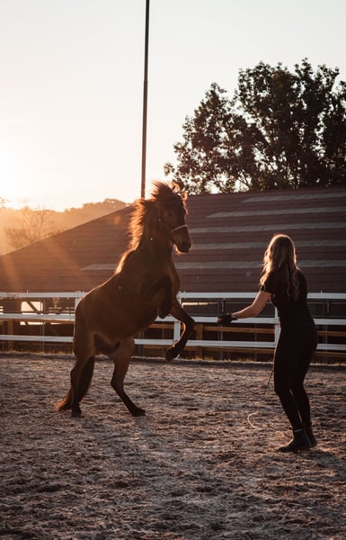 Hamur ist ein 2014 geborener Islandpferdewallach mit eleganter Aufrichtung. Trotz seines zierlichen Körperbaus deckt er auch normal gebaute Reiter:innen gut ab (z. B. 1,70 m). Mit seiner schönen Mechanik, seiner feinen Ausstrahlung und seinem besonderen Ausdruck ist er ein echter Blickfang. Er wurde vielseitig und abwechslungsreich ausgebildet und bringt eine tolle Grundlage für motivierte Freizeitreiter:innen mit: • Doppellonge & Longenarbeit • Dressurarbeit auf dem Platz • Trail & Handpferdereiten • Signalreiten & Freiarbeit • Teilnahme am IPZV-Trainerkurs mit soliden Leistungen Besonders liebt Hamur die Freiarbeit: Zirkeln, Abrufen aus verschiedenen Gangarten, kleine Kunststücke wie Steigen oder „Lachen“ – er ist mit Freude dabei und lernt sehr schnell. Auch kleine Sprünge machen ihm Spaß und bieten noch Entwicklungspotenzial. Unter dem Sattel zeigt er sich fein an den Hilfen und gut mitarbeitend. Im Tölt sind bereits die ersten Meter sicher abrufbar – hier darf er mit weiterer Förderung noch an Routine gewinnen und sich weiter entwickeln. Er ist verlade- und schmiedefromm, kennt mehrtägige Wanderritte, ist gesund, robust und ekzemfrei. Was wir uns wünschen: Hamur ist kein Anfängerpferd. Er sucht eine ruhige, erfahrene Bezugsperson mit Gefühl, Klarheit und Freude an vielseitiger Arbeit. Im Gelände kann er gelegentlich aufmerksam („guckig“) sein, bleibt aber mit Vertrauen gut händelbar. Er verzeiht Reiterfehler und bringt eine gute Selbsthaltung mit. Hamur ist ein Pferd mit Persönlichkeit – er bindet sich eng an „seinen“ Menschen. Wer sich auf ihn einlässt, bekommt einen treuen, motivierten Partner, der gerne mitarbeitet und schon am Zaun wartet, wenn man kommt. Gesucht wird ein liebevoller, langfristiger Platz bei pferdeerfahrenen Menschen, die ihn fair fördern und seine Vielseitigkeit schätzen. Der Preis ist der Ausbildung entsprechend fair angesetzt (kein Anfängerpferd). Optional kann gut angepasstes Equipment (u. a. ein neuwertiger Sattel) übernommen werden. ✨ Wenn du einen besonderen Partner suchst, mit dem du wachsen und vielseitig arbeiten kannst, könnte Hamur genau der Richtige für dich sein. Wir freuen uns über ernstgemeinte Anfragen und ein persönliches Kennenlernen.