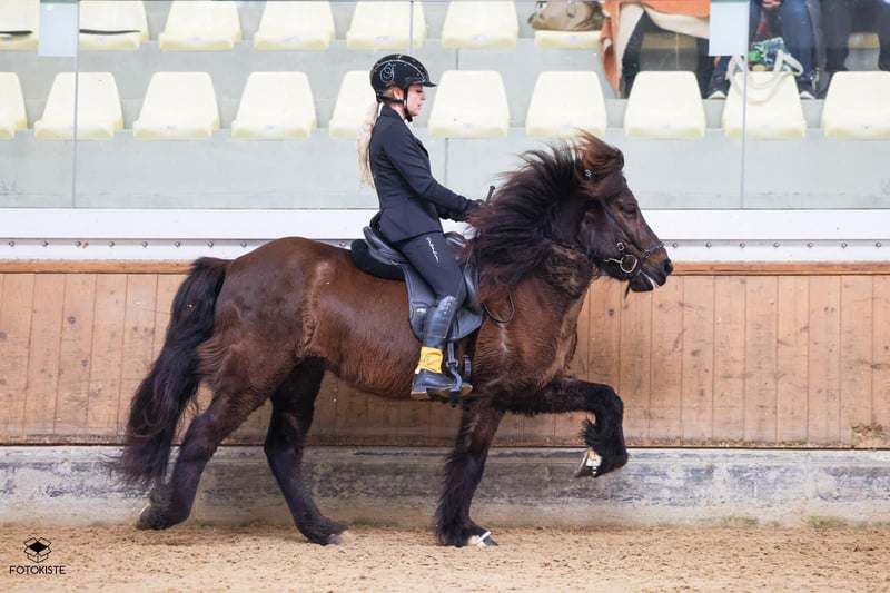 Loftur from Deister Gelding, 1.40m *2013 in Germany Four-gaited Black with no markings Shod, dewormed, vaccinated ✅ Loftur is a 12-year-old gelding who captivates immediately with his elegant appearance, long mane, and outstanding gaits. He always aims to please and excels equally in leisure riding as well as in competitions. Gaits & Riding Characteristics • Four clearly separated, easily callable gaits – ideal for beginners and experienced riders • Walk: marching and rhythmically secure • Trot: energetic • Canter: harmonious and powerful • Tölt: his greatest strength – always rhythmically clear, even, and reliable in every situation Loftur has already successfully participated in several competitions (V3 V5 T7 T8 T5 Dressage) and impressed with beautiful rides and good scores. He brings a wealth of experience and is suitable as a reliable teacher for both youth and adults. Usage Opportunities Whether as an ambitious competition horse or as a luxurious leisure partner – Loftur shows motivation, eagerness to learn, and willingness to work everywhere. He is a reliable companion both in the arena, on the oval track, in the dressage ring, and in the countryside. Character & Handling In handling, Loftur is attentive, friendly, and respectful. Children especially love grooming and pampering him. He is familiar with the farrier, veterinarian, and loading, and remains calm throughout. Housing & Health In the herd, Loftur is friendly, sociable, and adaptable. We wish for him to have a paddock with a small herd and plenty of freedom to move. However, he is also accustomed to standing in a box. He has a veterinarian-confirmed hay dust allergy, which, with appropriate feeding (wet or steamed hay), does not affect his health or zest for life in any way. Loftur, affectionately called Lofti by us, is the perfect partner for anyone looking for an experienced, versatile, and reliable horse – with that certain extra charm. Anyone interested in getting to know and trying out this beautiful black horse is welcome to visit us in A-5221 Lochen am See. P.S.: For the owner, placement comes before price!