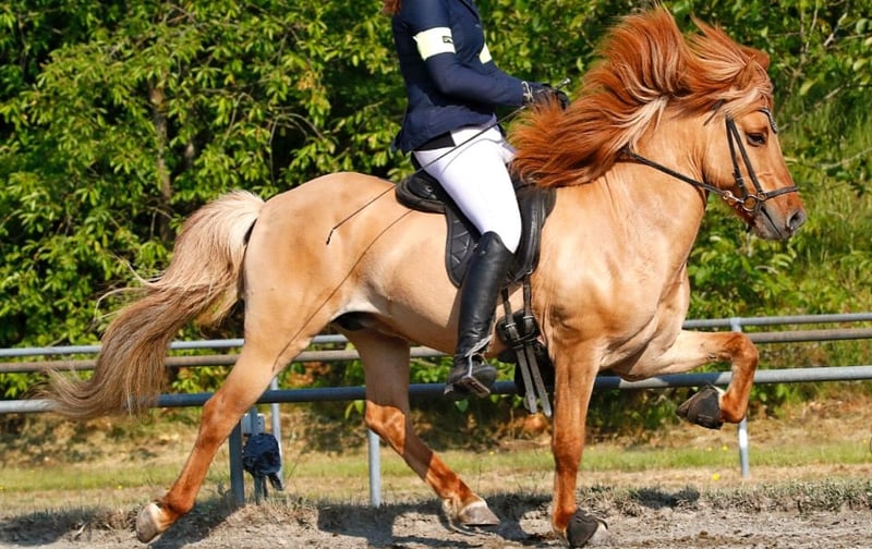 Super stylish all-rounder with incredible potential for high-level sport Máni frá Hrafnkelsstödum IS2012136873 Máni is a very handsome 1.42 m tall Galli granddaughter, a five-gaited dressage horse in a striking special color: chestnut with a star. He was a stallion until the end of 2024 and has sired 20 wonderful offspring, including several elite foals. Máni is an absolute all-rounder, as perfect as it gets: - He jumps over 1.30 m - Futurity four-gait (5-year-old): 6.9 points - FIZO all gaits 8.0 (presented as a four-gaited horse) - He loves to töl through the forest with a long rein - Always manageable (not suitable for beginners!) Máni can easily be ridden both in the front and in the back in terrain. He knows all dressage exercises and responds very lightly to aids. Due to my pregnancy, I have become too heavy for him, and ultimately, he was always a bit too small for me (I am about 1.90 m). I can very well imagine Máni for a well-riding youth or junior rider who wants to win some prizes at competitions or plans to participate in the DJIM. His best score is 7.0 in tölt, gallop, and trot, and 6.5 in walk. He was also qualified for F1 once, but his pace can sometimes be a bit four-beat, so I see his potential more in V1 and T1. But he would also be perfect as a luxury leisure horse. Máni has a good temperament, is always eager, and loves to be moved and worked. Máni is regularly vaccinated (for competitions), dewormed, seen by the farrier, osteopath, and dentist. He is currently untrained, as I was pregnant. Training will increase the price. Location: 49832 Thuine
