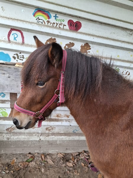 Heamir geboren am April .2022 als Fohlen prämiert Heamir ist ein sehr menschenbezogener und freundlicher Wallach, der im Freilauf überwiegend Tölt zeigt. Er ist viergänger. Da er über viel Tölt und eine sehr gute Abstammung verfügt, könnte ich ihn mir sowohl als Freizeit- als auch als Sportpferd vorstellen. Heamir kennt Spazieren gehen, alleine und mit einem Begleitpferd und zeigt sich dabei verkehrssicher. Er kommt auf Zuruf angelaufen und geht auch auf fremde Menschen von sich aus zu. Altersgemäß ist er noch nicht geritten, kennt jedoch bereits Sattel und Reitpad und lässt sich damit auch vollkommen gelassen über den Reitplatz führen. Generell reagiert er auf neue Dinge mit nur wenig bis gar keiner Scheu. Er lässt sich überall einsprühen, kennt die Fliegenmaske und lässt sich sogar frei auf der Weide scheren.Er ist schmiede- und verladefromm sowie ekzemfrei. Er steht in einer gemischten Herde im Offenstall mit Heu-Fütterung und ganzjährigem Weidezugang.