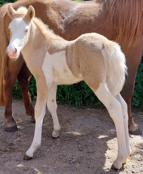 Dreymandi sucht noch nach seinem perfekt Match. Du suchst einen lieben Wallach, den so schnell nichts aus der Ruhe bringt ? Ein zukünftiges potentielles Verlasspferd für Klein und Groß ? Mit genügend Gangveranlagung um auch Kurse und kleine Sportveranstaltungen zu besuchen ? Dann bietet Dreymandi dir dafür eine gute Basis. Er ist 2022 bei mir geboren, von Fohlen an den täglichen Menschenkontakt gewöhnt, freundlich, unartenfrei und respektvoll. Brav im Händling, Halftern ein klacks, angebunden stehen wie eine 1 auch wenn es mal länger dauert, Hufpflegefromm und von Fohlen an das Verladen und im Hänger gefahren werden durch Weideumtrieb gewohnt. Verladefromm und steht brav im Hänger auch wenn er alleine gefahren wird. Altersentsprechend bis auf das normale Händling noch ungearbeitet, untrainiert und ungeritten, ein Rohdiamant den man nach eigenen Wünschen selbst ausbilden oder ausbilden lassen kann. Dreymandi ist regelmäßig entwurmt und auch geimpft gegen Tetanus und Influenca, er hat kein Ekzem und seine Eltern sind auch Ekzemfrei. Er wurde Anfang Herbst 25 kastriert und steht seit einiger Zeit unproblematisch und bis dato aufspringfrei mit Stuten zusammen, da Ihn in seiner alten Herde leider einer der Hengste seit seiner Kastration nicht mehr leiden kann und ich diesen Hengst nicht dauerhaft alleine stellen möchte/kann. Dreymandi ist Fünfgangveranlagt mit guten Grundgängen und je nach Tagesform zeigt er auch auch immer wieder Tölt und Pass. Meistens wählt er freilaufend von sich aus seinen schönen raumgreifenden Trab. Sein Schritt ist taktklar und auch sein Galopp ist für ein Fünfgänger mit gutem Takt und gerne mal Bergauftendenz vorhanden. Der Tölt ist reichlich vorhanden und gerade auf Bergab Strecke läuft er ihn gerne mal locker flüssig. So das ich eigentlich davon ausgehe das er später bei Beritt relativ einfach zum eintölten sein wird. Pass wurde schon mit gutem Tempo gesichtet und könnte später sicher auch gut antrainiert werden. Eine gerittene Halbschwester überzeugt mit ihrer Rittigkeit, Funfaktor, Zuverlässigkeit und wird seit kurzem auch mit Begeisterung und Tempofähigkeit im Pass trainiert. Seine Mutter Ist Stutbuch 1 eingetragen und überzeugt als zuverlässiges Allround Reitpferd für jeden. Mit Abstammung auf Ægir frá Móbergi und über Byskup frá Hólum auf Feykir frá Hafsteinsstöðum finden sich noch weitere Bekannte Pferde in ihrem Pedigree. Sein Vater selbst ist geritten geprüft, ein Pferd für jeden Reiter und alle Gelegenheiten egal ob Freizeit, Kurse oder auch Turnier auf ihn ist immer Verlass und macht jedem Spass. Mit Abstammung auf die bekannten Hengste Glampi frá Vatnsleysu und Dagfari frá Sauðárkróki etc.. Dreymandi ist quadratischen kompakt gebaut mit etwas sportlichem Touch und derzeit ca. 136 Stm, da er zurzeit wieder etwas verbaut wirkt gehe ich davon aus das er noch seine 3-4 cm Höhenwachstum und noch mehr Masse bekommen wird. Mit seinen knapp 3,5 Jahren hat er dazu auch noch genügend Zeit. Durch seinen nicht zu langen Rücken, die stabilen Beine und ausreichend Gurttiefe wird er auch normale erwachsene Reiter abdecken können. Aufgrund seines Charakters und Gemüts könnte ich ihn mir auch mit späterer passender Ausbildung im Bereich Therapie, Kinderreiten, Jugendreiten und Fahren gut vorstellen. Ein potentieller Allrounder der gegen Ende des Jahres schon langsam seine Ausbildung Richtung Reitpferd beginnen könnte. Gerne kann er angeschaut werden. Er kann direkt in ein neues Zuhause umziehen. Eine Aku kann auf Wunsch des Käufers durchgeführt werden. Ein Transport innerhalb Deutschland ist gegen Kostenerstattung möglich. Bei echtem Interesse freue ich mich auf Nachricht.