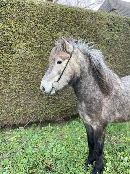 Safir is a gray apple gelding born in 2020 with a bright character and beautiful uprightness. This strikingly beautiful gelding shows clear tölt both free and under saddle from the very first second. His canter is well jumped. He shows trot in the transitions, but then with wide movements. With further training in strength and balance, Safir will quickly learn to trot. He has been gently broken in and is familiar with ground work, lunging, double lungeing and everyday life on the farm, such as tractors, dogs etc. Safír can already be ridden well everywhere. He is also courageous in the field and does not get flustered.
