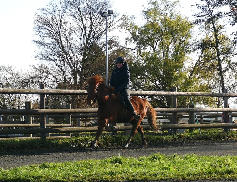 Roter Diamant Neisti ist ein vielversprechender junger Islandwallach, der durch seine altersgerechte, professionelle Ausbildung bereits jetzt eindrucksvoll zeigt, was in ihm steckt. Als eleganter Viergänger überzeugt er mit leichtfüßigen, taktklaren Bewegungen und einem besonders schön gesprungenen, ausbalancierten Galopp – selbst auf kleinen Kreisen sicher und mühelos abrufbar. Er kennt Bodenarbeit, Longieren sowie Reiten drinnen und draußen. Er kennt bereits eine Vielzahl an Situationen und arbeitet konzentriert sowie zuverlässig mit. Neisti ist sensibel an den Hilfen und bietet seinem Reiter dadurch ein feines, harmonisches Reitgefühl. Durch seine gute Rittigkeit und seine natürliche Leistungsbereitschaft eignet er sich sowohl als talentiertes Turnierpferd als auch als unkomplizierter, motivierter Partner für die Freizeit. Er ist brav im Umgang, gut sozialisiert in unserer Wallachherde und entspannt beim Schmied. Ein junger Wallach mit Zukunft – aufmerksam, elegant und bereit für neue Aufgaben. Neisti wartet auf einen Menschen, der sein Potenzial weiter fördern und mit ihm gemeinsam wachsen möchte. Aktuell ist er altersbedingt für einen sicheren, lockeren Jugendlichen oder ambitionierten Erwachsenen geeignet- kein absolutes Anfängerpferd, aber auch nicht besonders anspruchsvoll.