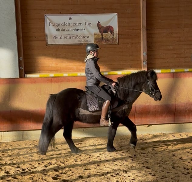 Kräftiger Isländerwallach. Unser Rappe mit Herz, Fundament und dem „Ich-bin-dein-Kumpel“ Faktor dein echter Verlass-Partner Manche Pferde beeindrucken auf den ersten Blick. „Genau dich habe ich gesucht.“ Dieser wunderschöne, kräftige Isländer ist genau so einer und mit seinen 6 Jahren im besten Alter. Jung genug für viele gemeinsame Jahre und dabei schon angenehm gefestigt. Mit seinen aktuell ca. 1,41 m (Endmaß ca. 1,44 m) bringt er alles mit, was man sich für einen langlebigen Freizeit- und Sportpartner wünscht. Er ist sehr gute bemuskelt, besitzt ein kräftiges Fundament sowie starke Sehnen und Bänder. Geboren und in der Herde robust aufgewachsen ist er hier in Deutschland. Gesund, trittsicher und auch im Gelände unter dem Sattel absolut souverän. Ein Charakter, der glücklich macht. In der Herde zeigt er sich vorbildlich sozial, unkompliziert und fair. Mit Artgenossen wie mit Menschen ist er einfach angenehm freundlich, neugierig und aufgeschlossen. Das Pferd, das mitdenkt, ohne kompliziert zu sein. Ein echter Seelenkumpel, den man gern um sich hat. Ausbildung & Umgang: „Aufsteigen und wohlfühlen“ Er ist schmiede- und verladefromm, kennt das Longieren, die Bodenarbeit und ist gut geritten. Er ist Viergänger und macht unter dem Sattel richtig viel Freude. Das Beste: Er ist sehr bequem zu sitzen. Er kennt sowohl Englisch- als auch Westernsattel und bleibt immer stets gelassen. Er ist ein Pferd zum Durchatmen.Top im Gelassenheitstraining,geländesicher und gibt seinem Menschen Sicherheit, Vertrauen und dieses ruhige „Wir schaffen das“ Gefühl, egal ob allein oder in Gesellschaft. Wenn du einen Isländer suchst, der stabil gebaut, klar im Kopf und warm im Herzen ist, dann ist das hier nicht „irgendein“ Pferd. Das ist der Typ Freund, den man nicht mehr hergibt. Ein absolut unkomplizierter Partner fürs Leben und bereit, genau bei dir anzukommen. Bei Interesse gerne schreiben oder anrufen unter 01709343872 Für einen Besuchstermin mit Vorreiten und Probereiten berechnen wir 40€ die beim Kauf selbstverständlich erstattet werden. Hierfür bitten wir Sie um Verständnis.