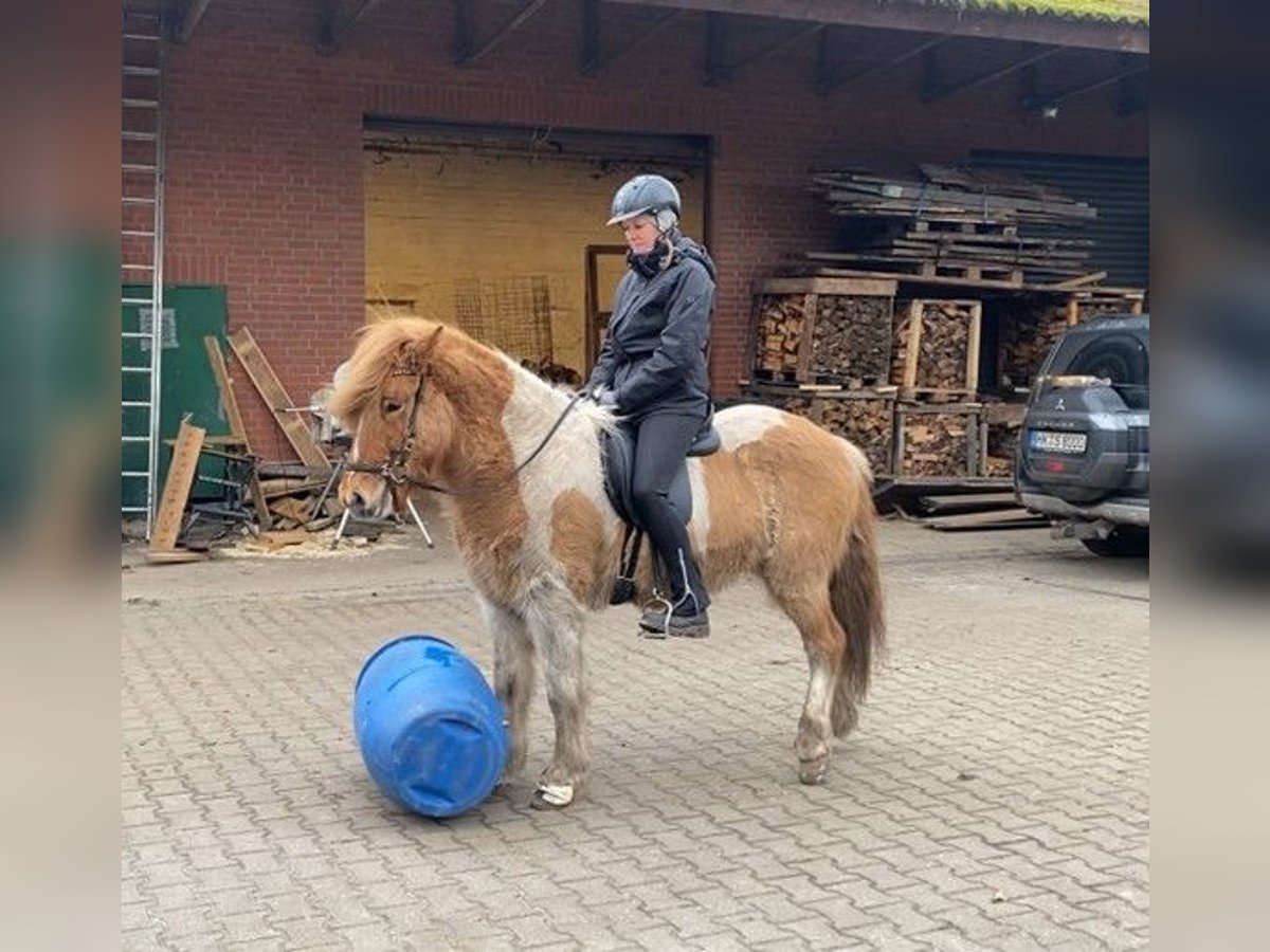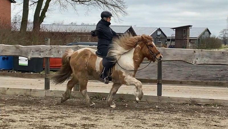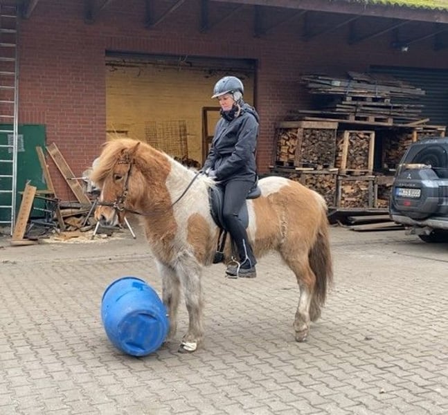 ængur frá Skíðbakka III - gelding - chestnut pinto with blaze, five-gaited, *2019, stm. approx. 145cm Here comes Vaengur - a horse you can always rely on! If you are looking for a horse that is calm, fearless and absolutely relaxed, then you have just found it. Vaengur stays cool no matter what happens - whether on the road, in the field or when we've come up with the next creative nonsense. With his calm temperament, his carrying capacity and his friendly, people-oriented nature, he is perfect for beginners, anxious riders, children and gentlemen riders. He is a real feel-good horse who gives you confidence from the very first minute. Why is Vaengur just the right horse for you? ✅ Bombproof & fearless - stays calm no matter what ✅ Ideal for beginners & anxious riders - gives you confidence straight away ✅ Large & stable - also perfect for gentlemen riders and riders looking for a stable horse ✅ Versatile & uncomplicated - well-behaved, loves people and likes to cuddle ✅ Five gaited with clear, beautiful gaits - trot with impulsion, soft canter and great tölt ✅ Perfect in the field - Vaengur takes you everywhere safely, even when things get exciting And the best thing? Vaengur simply does everything! Whether it's farmyard maintenance directly from the horse or a trip to the cows - he remains calm, composed and reliable. Even if something briefly irritates him, he stays with his rider and simply goes along with it. With the right support, Vaengur will become a real dream horse that you will enjoy for many years to come!