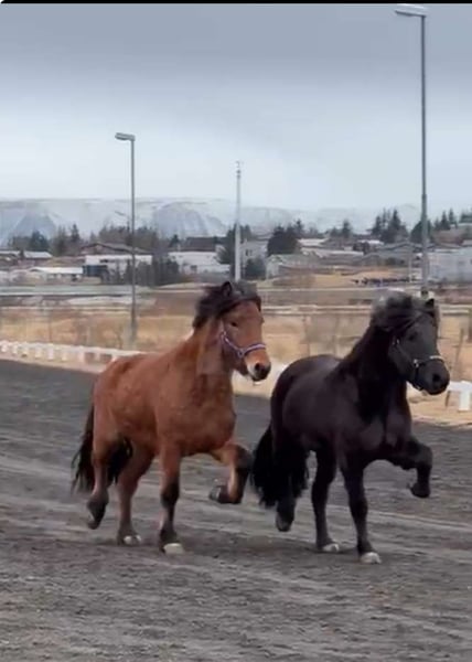 IS2018182794 Kleur Bruin Geslacht Ruin V: Ómur frá Kvistum M: Kolfreya frá Holtsmúla 1 MV: Orri frá Þúfu Locatie: IJsland Geweldige ruin met goede afstamming en DROOMkarakter! Met pijn in mijn hart verkoop ik hier mijn mooie bruine Ómursohn. Hij is afkomstig van een goedgekeurde Orri-dochter. Zij is beoordeeld met 7.92. Kolfreya heeft al veel zeer mooie nakomelingen gebracht. Zijn vader is Ómur frá Kvistum, de vader van vele geweldige fok- en sportpaarden. Mijn ruin is extreem vriendelijk en geïnteresseerd in mensen, hij houdt ervan om gekriebeld te worden, maar is absoluut niet opdringerig. Hij is ongeveer 1.40m groot. Hij toont een gelijkmatige draf en galop met mooie bewegingen. Als veulen heeft hij bijna uitsluitend taktzuivere tölt getoond. Onder de ruiter laat hij veel gemakkelijk te rijden tölt zien, waarbij hij met meer training nog meer tempo zal krijgen. Kleinere wedstrijden zouden met meer training in de toekomst zeker mogelijk zijn met hem, aangezien hij onder de ruiter een goede opwaartse neiging in zijn lichaam en ook mooie bewegingen laat zien. Hij heeft vorig jaar enkele maanden in professionele training gestaan, waar hij zich zeer vriendelijk, talentvol en leergierig heeft getoond. Momenteel staat hij op de wei. Hij zal binnenkort weer in training worden genomen. Meer foto's en video's kunnen bij interesse graag worden toegestuurd!