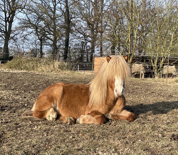 At 7 months old, Gulliver from Iceland came to me, and as a stallion, he grew up both in a stallion group and on large pastures within big herds in Schleswig-Holstein. Approved by the HH/SH horse breeding association, I decided to geld him at the age of 6. His magnificent, thick, curly mane has remained. His striking blue eyes make this horse unmistakable. Character-wise, he is an absolute sweetheart. Currently ridden by a young rider, he also behaves perfectly well with children. In the future, he could be a horse that provides great pleasure both in the terrain and in the arena, and with appropriate training, he could excel in four-gait and Tölt competitions. As a stallion, he was once presented for futurity, and at 6/7 years old, he was shown with a V5/T7 rating, including wins and placings. Fearless, social within the herd (lives with geldings in an open stable), and completely uncomplicated in every way. Vaccinated, dewormed, etc., naturally. Videos are available upon request.